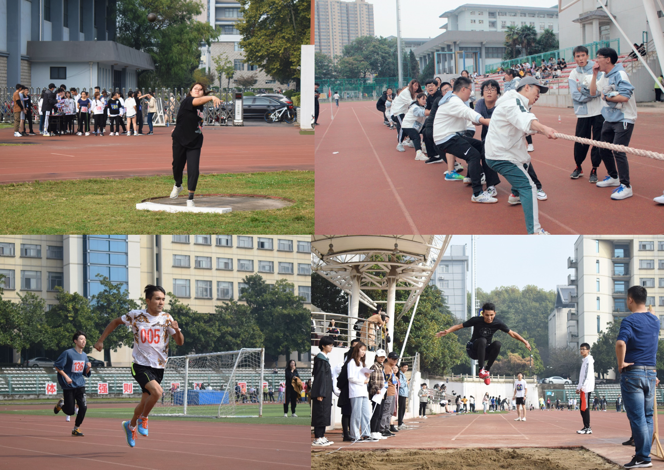 运动会不仅是个体之间的较量,更重要的是团队之间的协作。“与子同袍”比赛中,四名运动员通力合作,为一个相同的目标努力奋战着。拔河比赛中,虽然有些选手已经精疲力尽,但仍在咬牙坚持着,这就是永不言弃的运动精神。随着拔河比赛的尘埃落定,本次院运会也行至尾声。