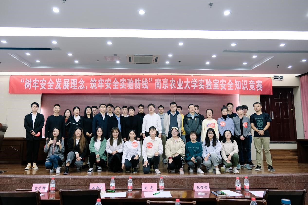 最后,所有参赛成员及到场嘉宾共同合影留念,“树牢安全发展理念,筑牢安全实验防线”研究生实验室安全知识竞赛决赛圆满结束。希望通过本次比赛进一步提高研究生的安全防范意识和自我保护能力,加强实验室安全知识的普及,让实验室安全理念深入人心,让大家从“要我安全”转变为“我要安全”,一起努力营造更加安全、舒适、和谐的实验室环境。