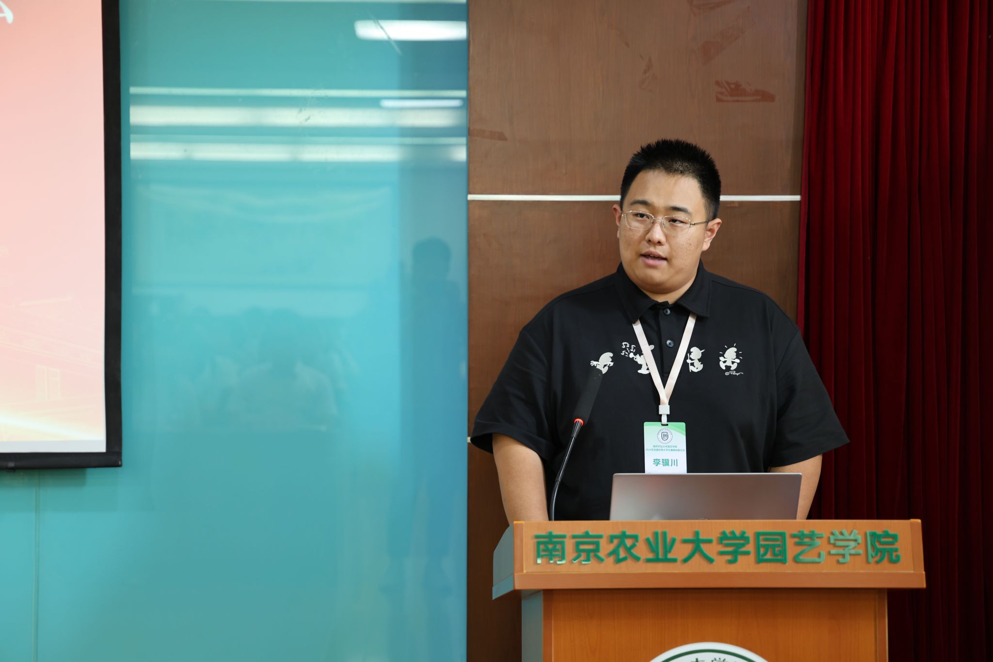 优秀营员代表李骥川发言,他首先对本次创新论坛的筹办表示感谢,其后从初见南农、了解南农和领悟南农三个角度回顾两天行程,阐述对南农成人影院 “勤于园,精于艺,厚于德,勇于新”院训精神的个人理解,最后以“追求卓越,开拓创新”倡议同行学子一同为世界带来更多的绿色与美好。