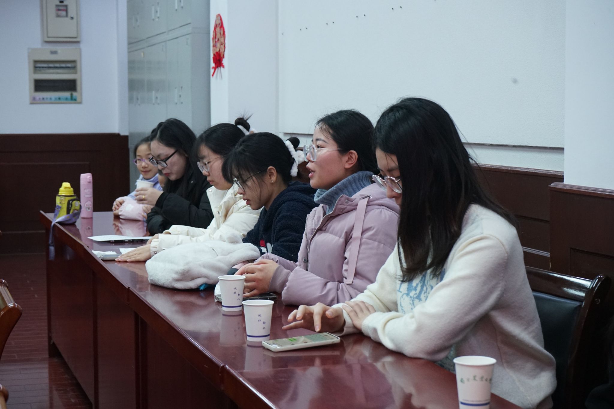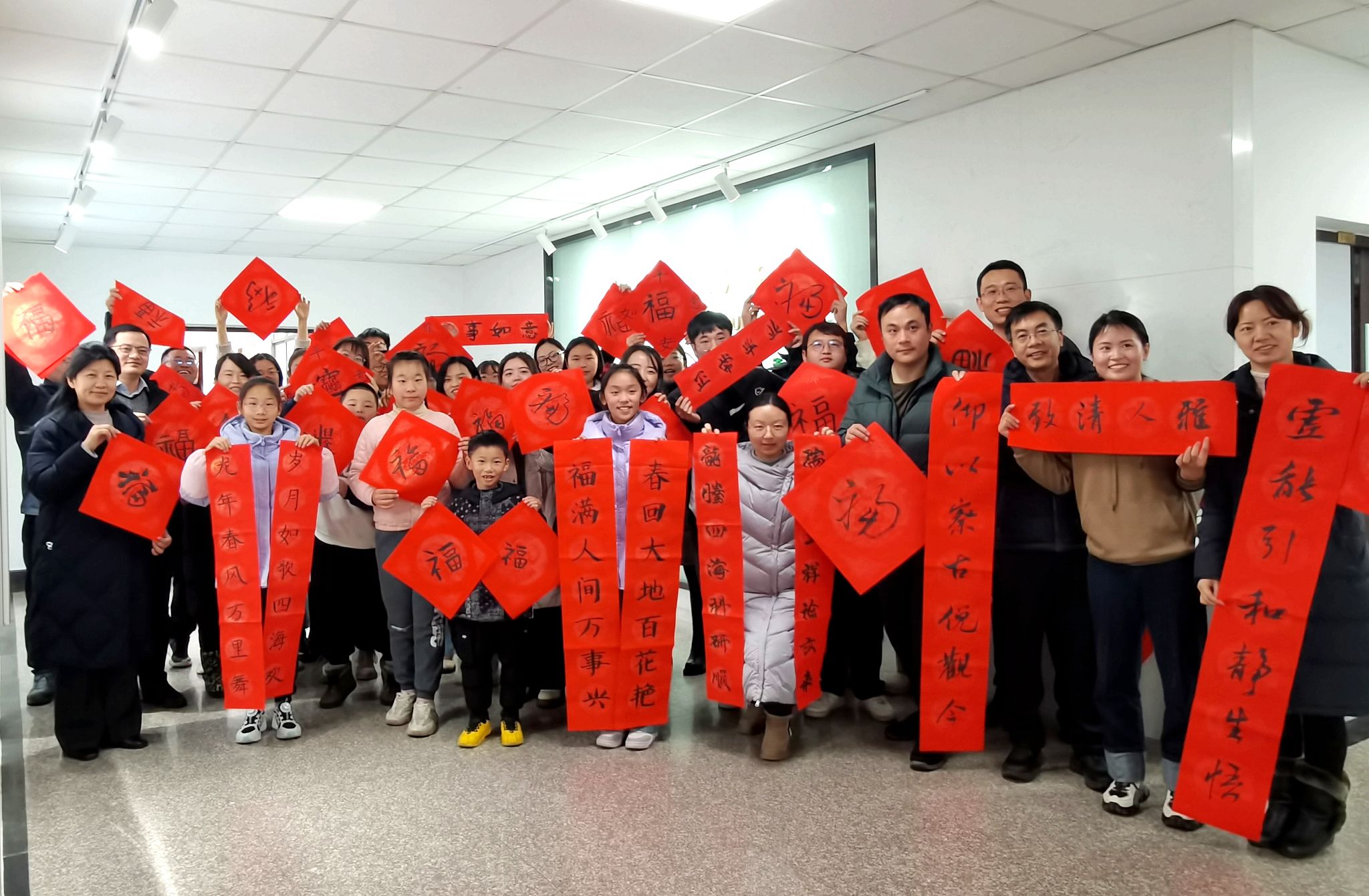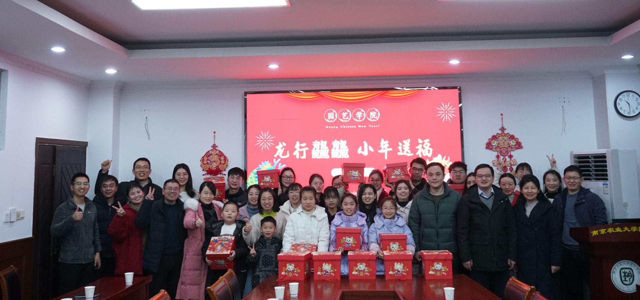 于生科楼B4003举办留校师生座谈会暨新春书法送福活动,在校教师与留校学生在农历小年齐聚一堂,话新春,书福字,品年香。院党委书记韩健、院长陈素梅、副院长张清海、院党委副书记石木舟及师生代表共计30余人参加活动。
