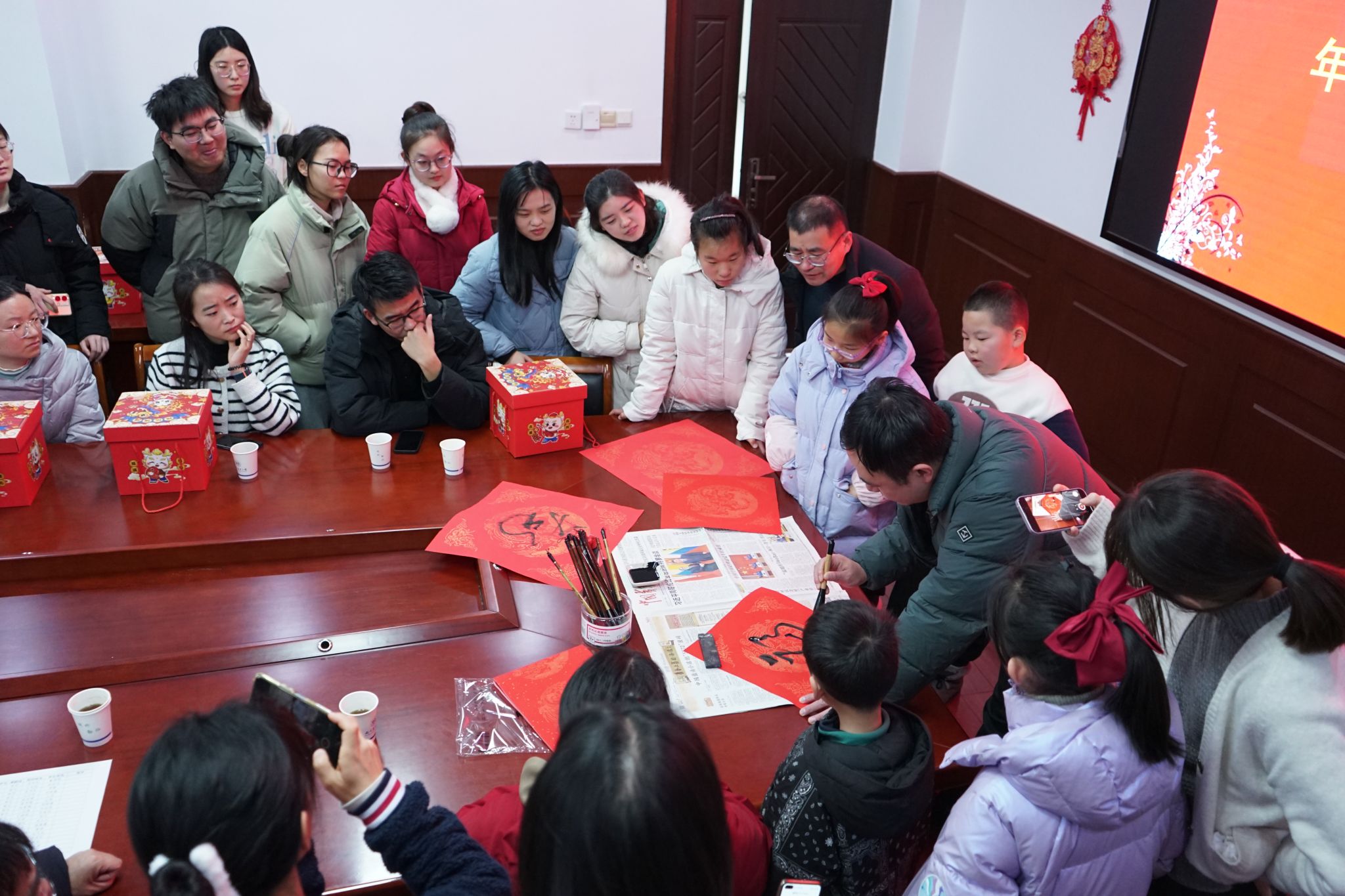 座谈会后,新春书法送福活动继续进行。成人影院