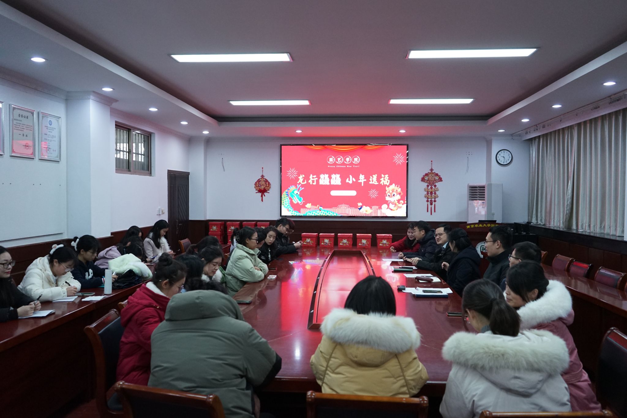 座谈会上,院领导与在校教师及留校学生亲切交谈,师生分享旧岁经历,憧憬新岁理想,科研突破、升学顺利、求职成功等各样的新年愿望在轻松欢快的氛围里一一呈现,老师们也积极询问留校学生的校园生活状况,了解在校生活困难,解答科研生活困惑,师生情更亲、心更近。