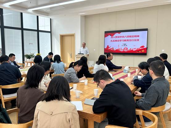 丁艳锋以《深入贯彻中央八项规定精神扎实推动学习教育见行见效》为题为支部教师讲授专题党课。他从“八项规定”的出台背景切入,系统解读其核心要义,结合近年来高校违反中央八项规定精神的典型案例,深入剖析“四风”问题的隐蔽性和危害性。丁艳锋强调,党员教师要以案为鉴,警惕科研经费滥用、学术不端等风险,杜绝“因小失大”的短视行为。他结合自身学习体会提出:“全面从严治党永远在路上,自我革命永远在路上。唯有常怀敬畏之心,方能行稳致远。”