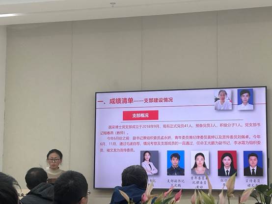 各支部书记围绕“七个有力”的建设标准,重点从党纪学习教育开展情况、“三会一课”制度和主题党日活动的落实情况、党建与业务“一融双高”推动中心工作情况以及存在问题和整改等方面进行汇报。教师党支部重点突出党建与业务双融双促、落实立德树人根本任务;学生党支部重点突出加强思想政治引领、发挥先锋模范作用。