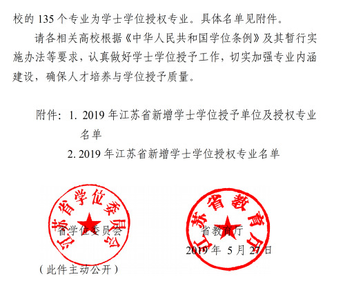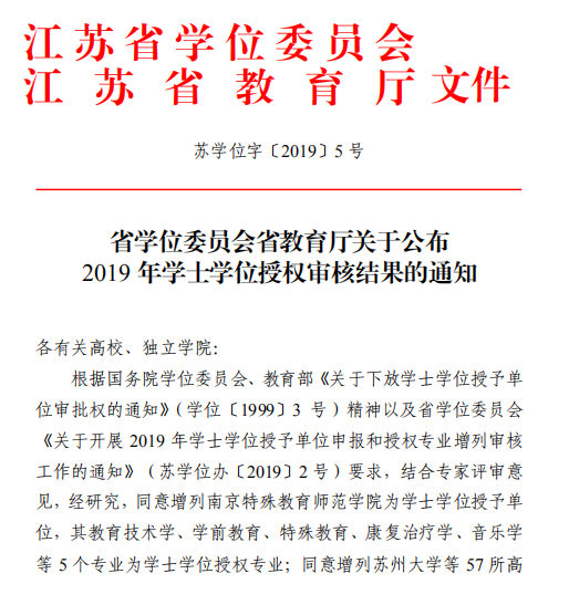 近日,江苏省学位委员会、江苏省教育厅印发了《省学位委员会省教育厅关于公布2019年学士学位授权审核结果的通知》(苏学位字〔2019〕5号)文件,经成人影院