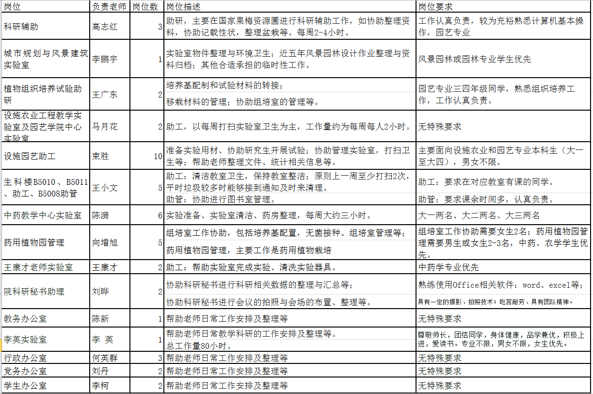 勤工助学工作岗位的招聘工作,现将本学期勤工助学岗位招聘相关事宜通知如下: