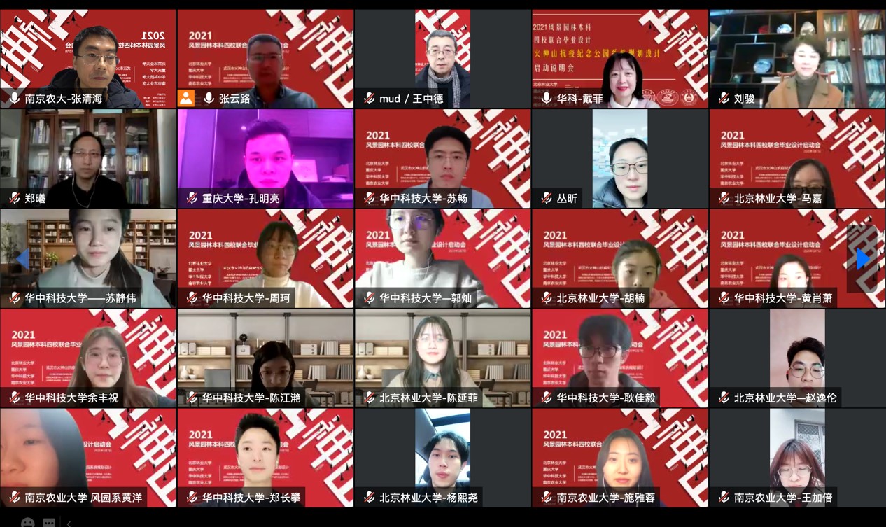 4所院校联合举办的2021年风景园林本科四校联合毕业设计“武汉市火神山抗疫纪念公园系统规划设计”启动仪式,以线上会议的方式顺利拉开帷幕。