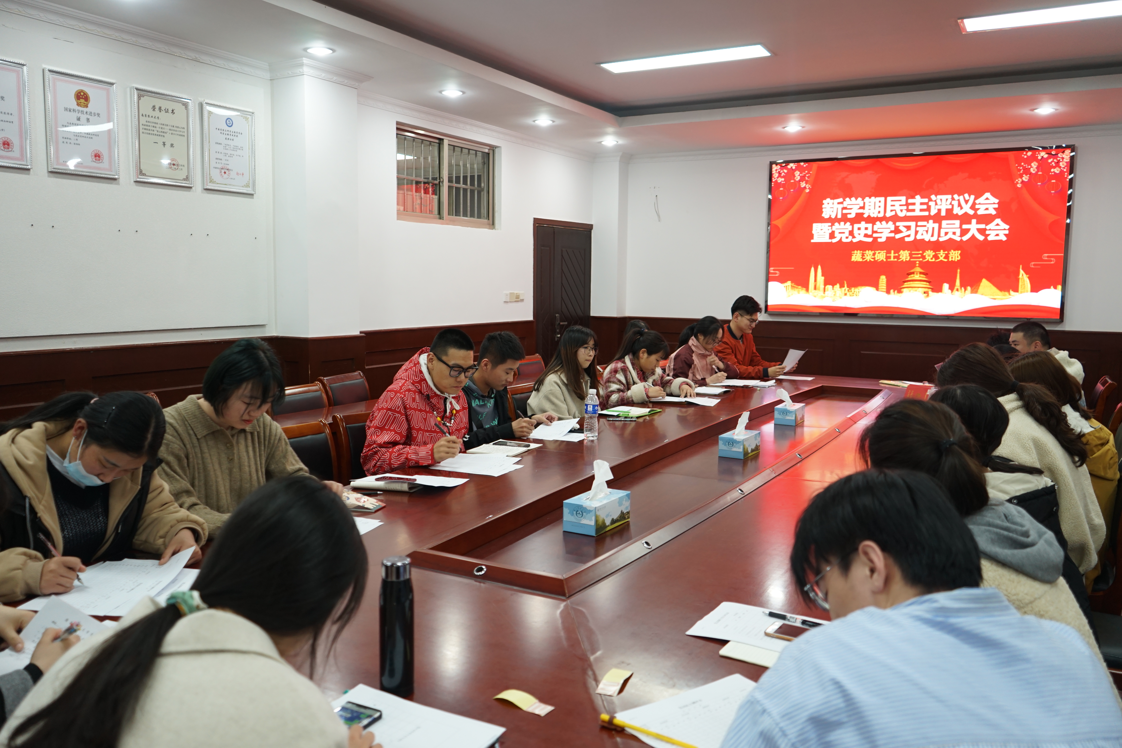 3月18日,蔬菜硕士第三党支部民主评议会暨党史学习动员大会在生科楼厚德厅顺利举行,支部全体党员参加,会议由支部书记褚阳阳同志主持。