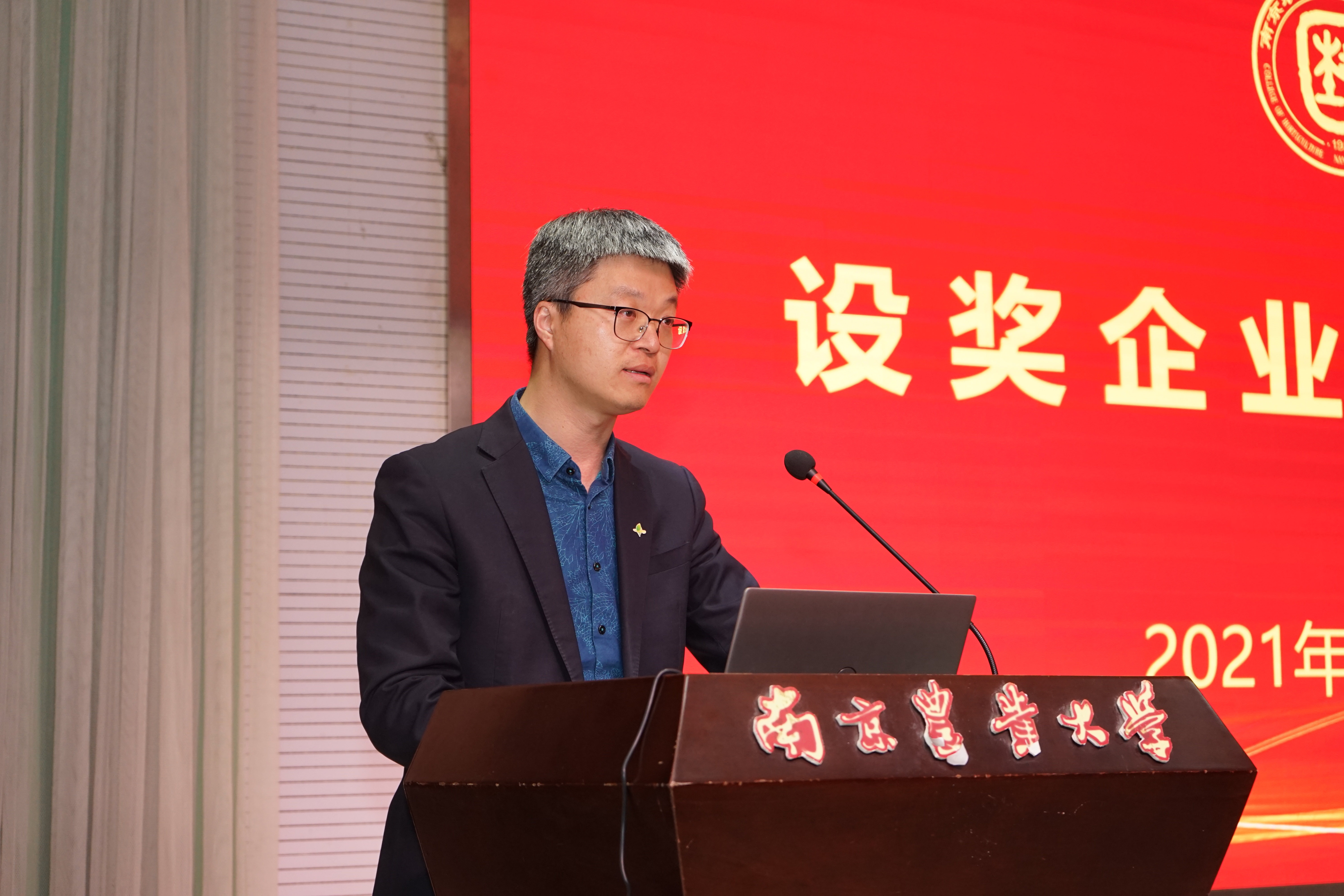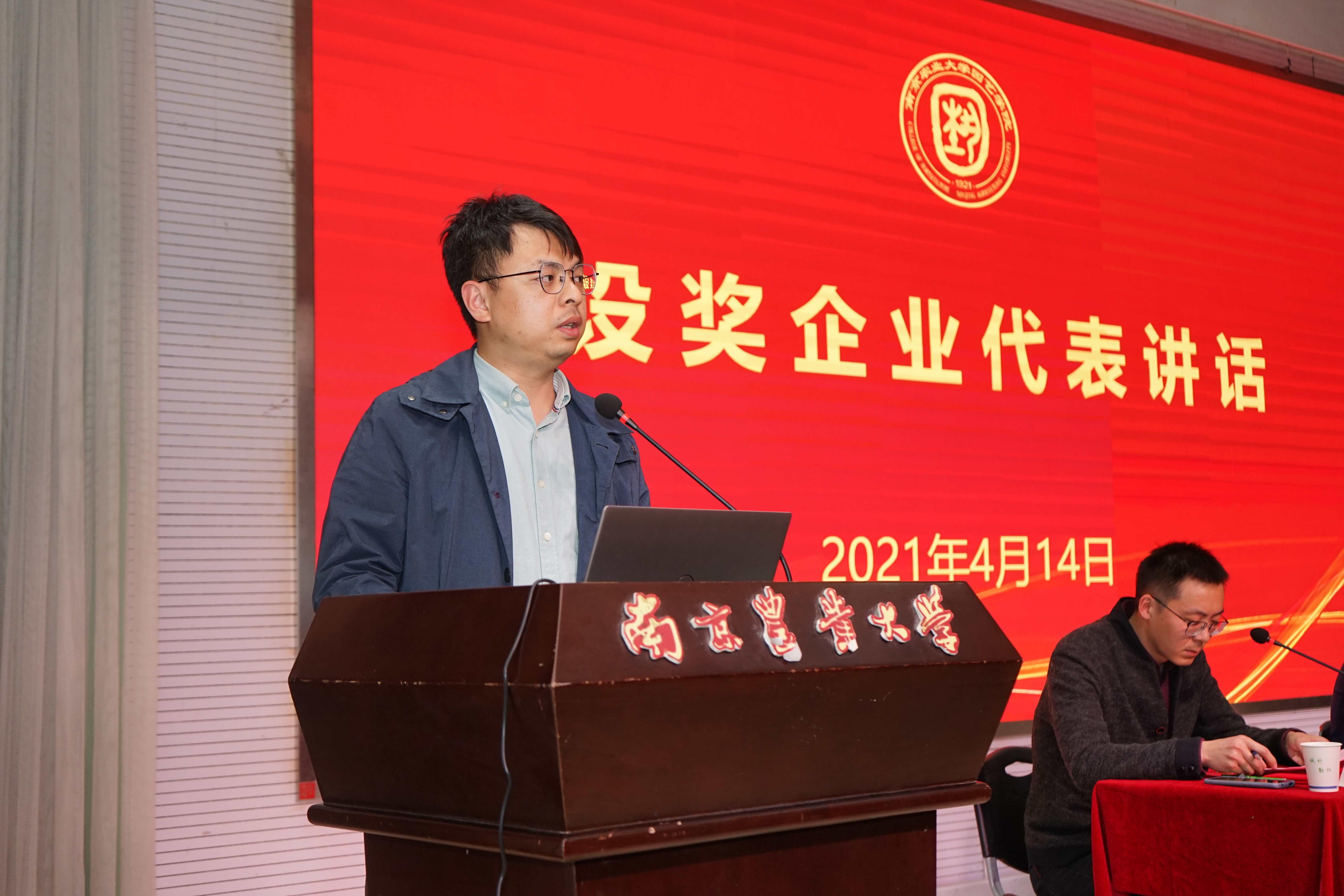 张永辉、黄晨作为设奖企业代表讲话,张永辉首先介绍了金埔园林股份有限公司基本情况,并指出企业的竞争优势,即人才优势、运营模式和技术优势;黄晨介绍了棕榈生态城镇发展股份有限公司的基本情况,并就成人影院进行了详细介绍。张永辉、黄晨还就个人在南农学习、生活向与会同学进行了分享。