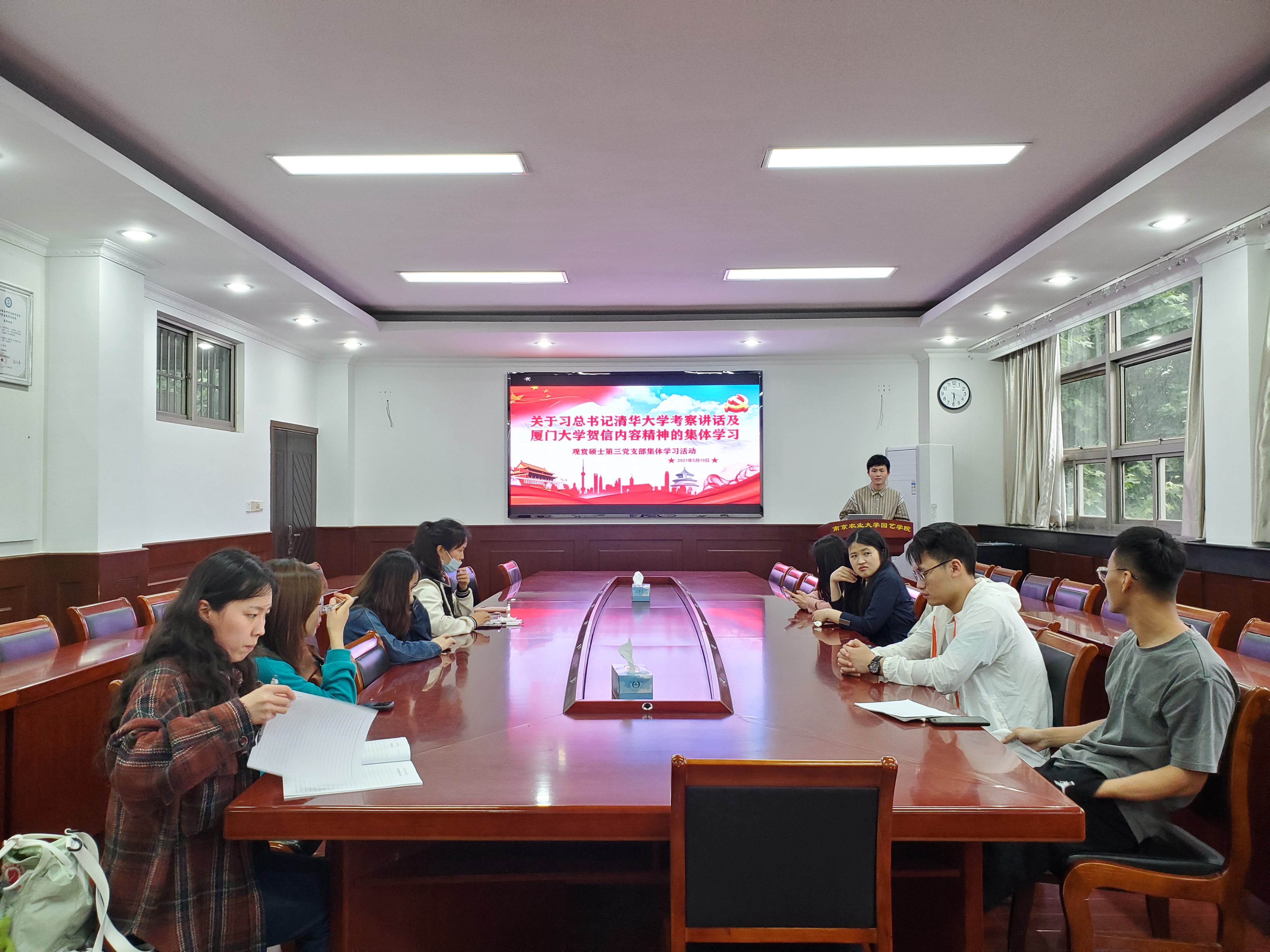硕士第三党支部于生科楼B4003会议室召开关于习近平总书记清华大学考察讲话及厦门大学贺信内容精神集体学习会议,党支部全体党员参与本次会议,会议由党支部副书记贾棣文主持。