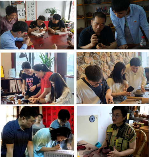 百年”为主题,进行紫砂壶等艺术作品的创作。在体验的过程中,师生们感受到做一把“好壶”的不易,也感受到这一非物质文化遗产的魅力所在。同学们纷纷表示,要做美的使者,在党史学习中增强文化自信,让更多人了解紫砂的魅力,保护、宣传好国家的传统文化和技艺;要向这些非遗传承人学习,将这种“匠人精神”融入平时的工作和生活中,踏实走好人生的每一步。