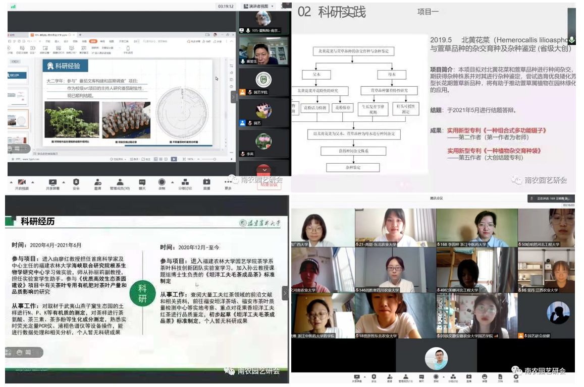 系系主任上官凌飞,茶学系系主任陈暄,设施农业科学与工程系系主任束胜,导师代表高志红,研究生辅导员芮伟康,以及经过层层选拔、来自全国各地54所高校的共170名本科生通过网络相聚云端,参加了论坛的开幕式。开幕式由成人影院