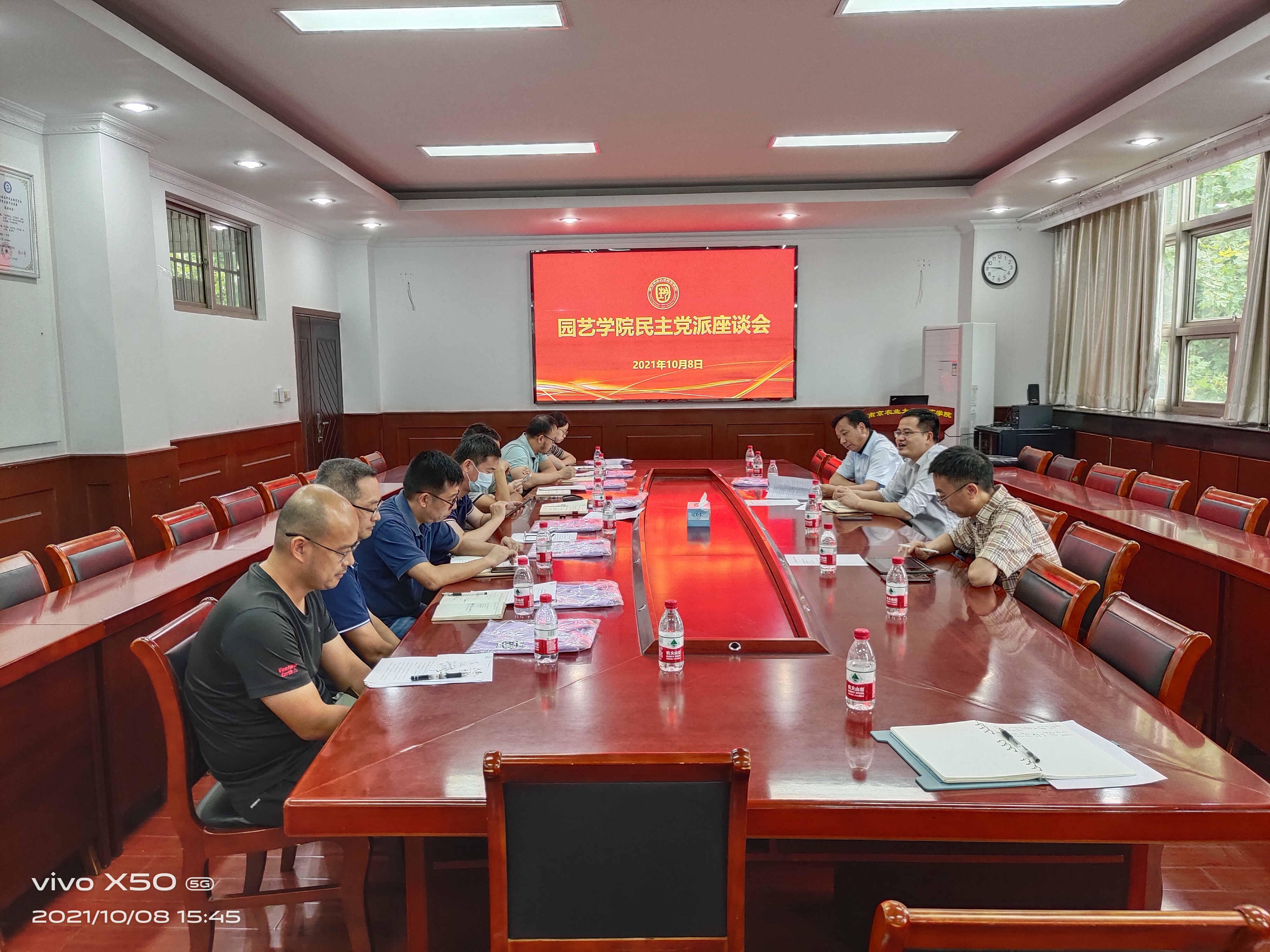 党委在生科楼b4003召开民主党派代表人士及群众代表座谈会,院党委书记韩键、副院长张清海、党委委员孙锦、刘丹以及成人影院