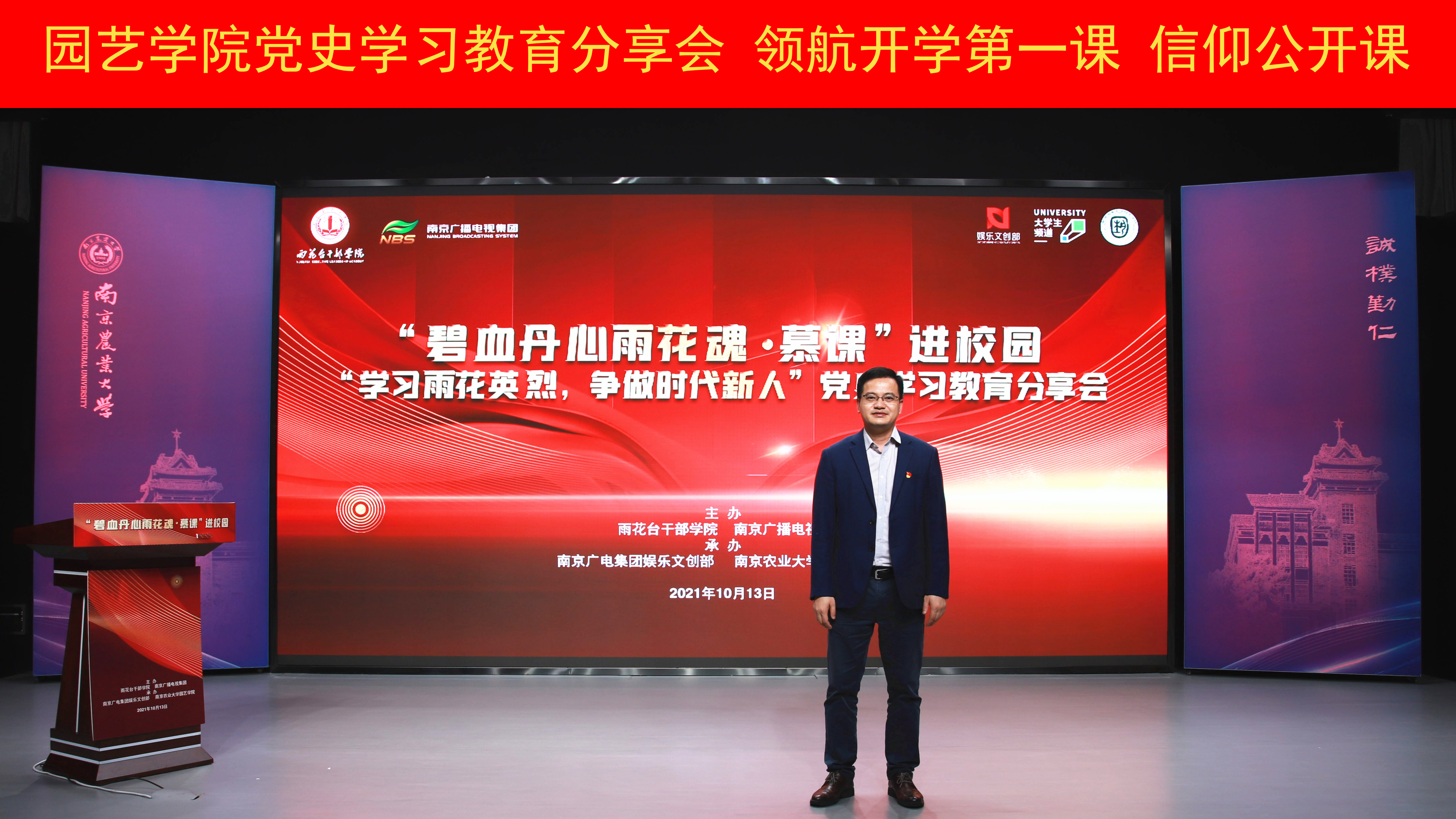 党委深化党史学习教育、领航开学第一课、信仰公开课的重要举措,旨在为大学生树立正确人生观、价值观提供帮助,通过积极传播雨花英烈的故事,大力弘扬英烈精神,激励在校大学生爱党爱国、扎实学习、报效社会。本次活动得到南京电视台大学生频道的大力支持,在Live南京频道、牛咔视频App等平台全程直播。