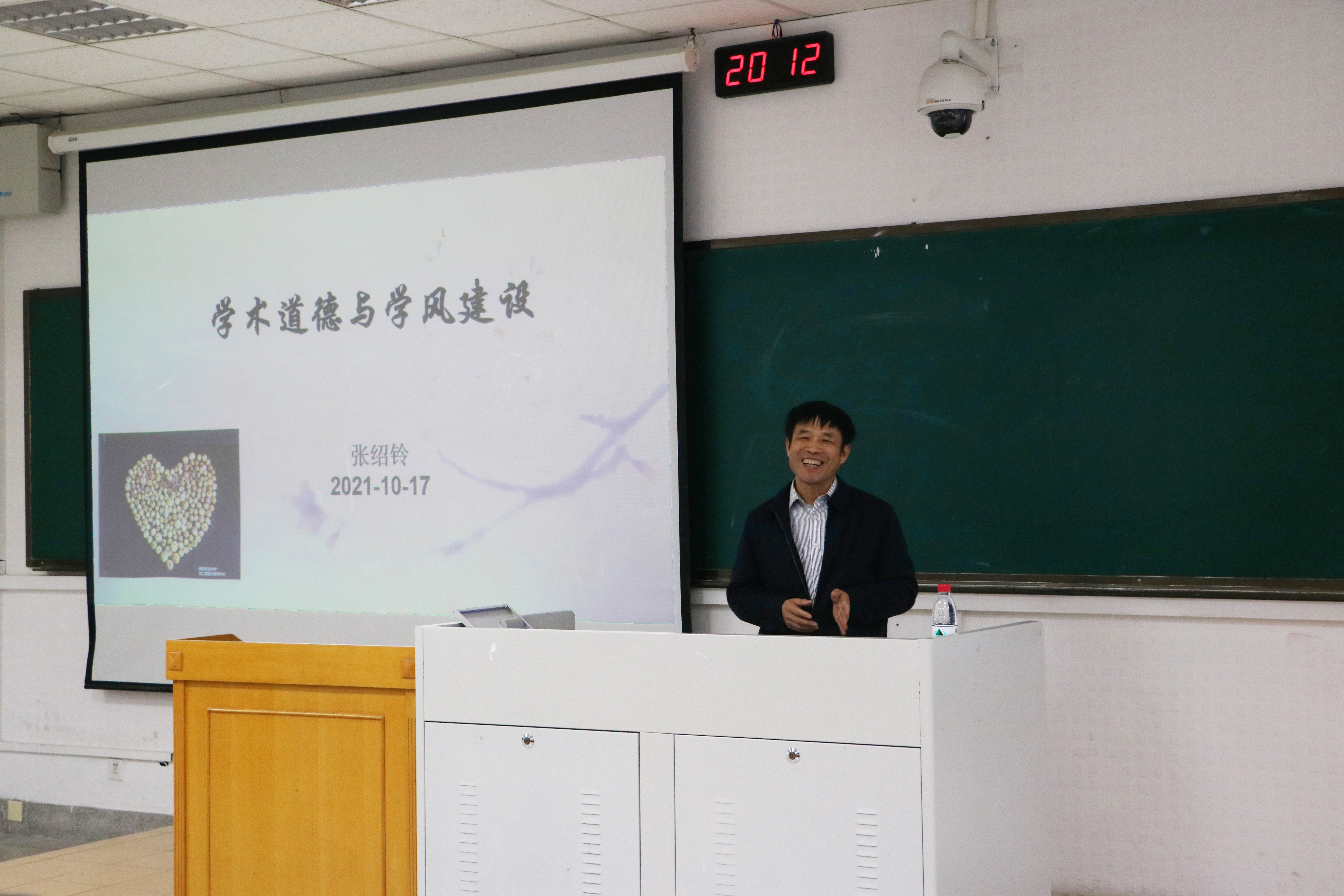张绍铃老师围绕“学术道德主要问题”、“学术不端主要行为”、“学术道德基本要求”三个方面为全体新生带来了“学术道德与学风建设”专题报告。他希望所有研究生新生要制定目标、珍惜时间、持之以恒,在静心科研的同时加强沟通,并加强锻炼,学会减压,保持身心健康。