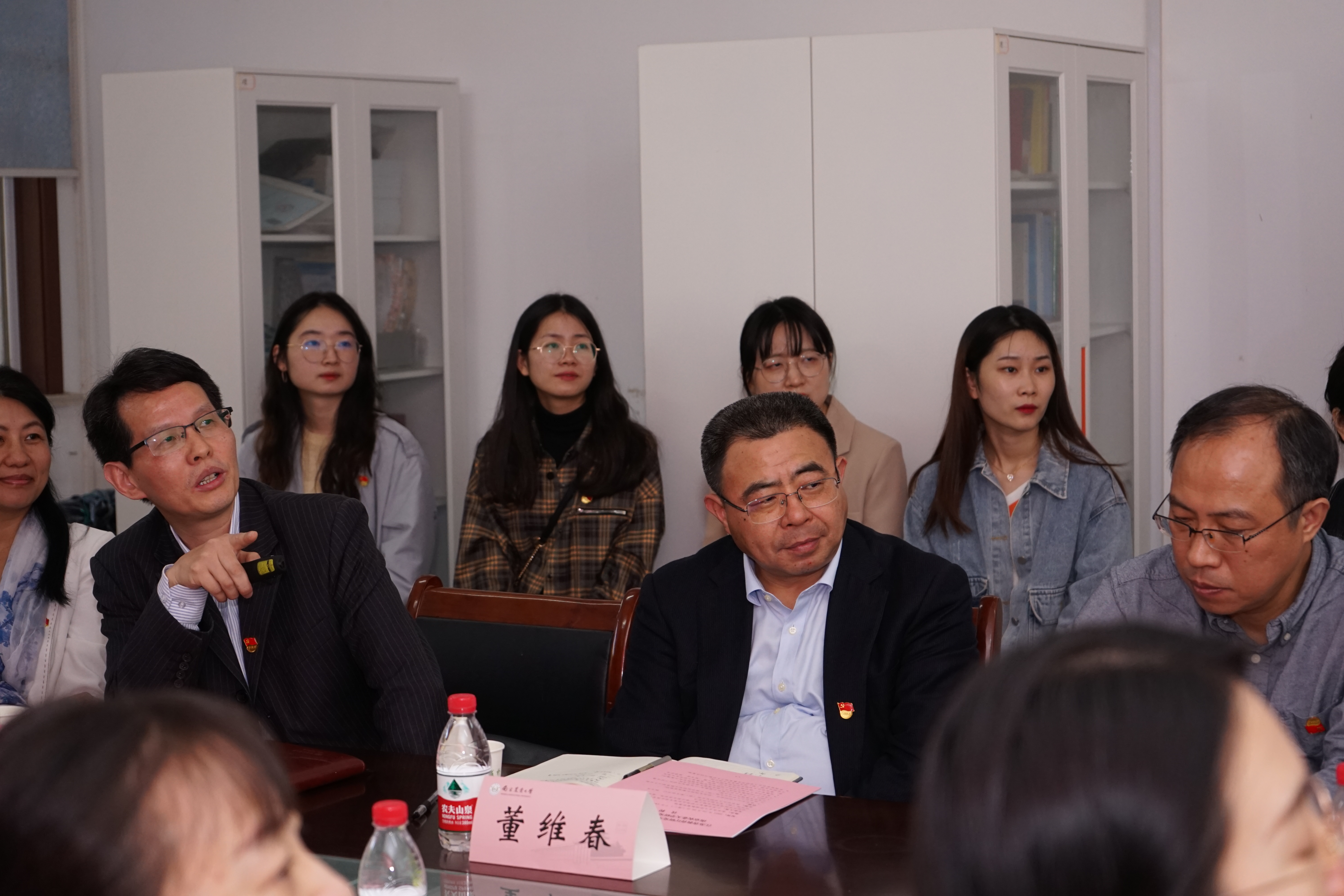 江苏省教育厅一级巡视员洪流,校党委常委、副校长董维春,省教育厅研究生处党支部书记李国荣及研究生处党支部党员、借调干部,校研究生院常副院长吴益东、研工部部长姚志友等党政领导及研究生院(部)党支部成员,成人影院