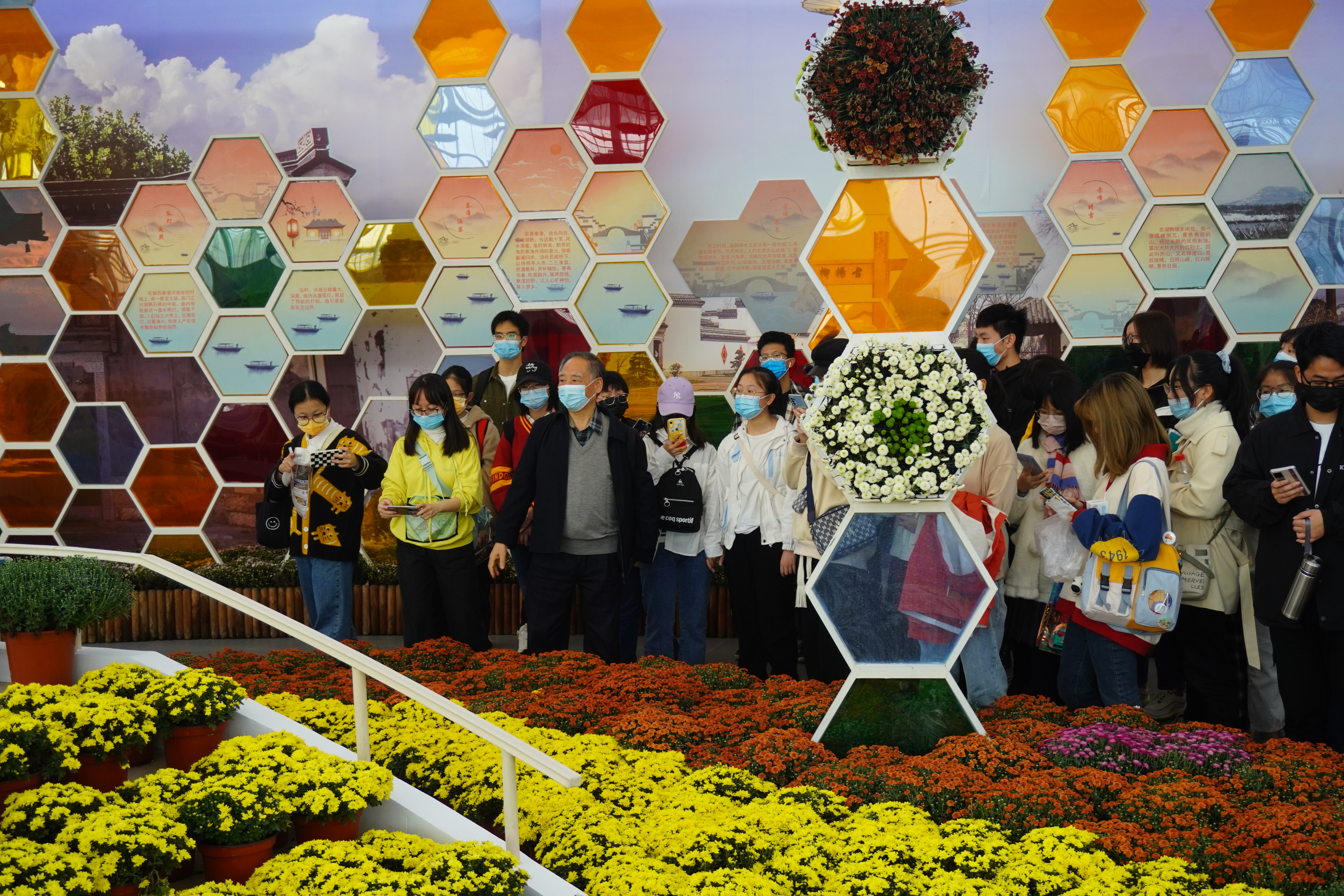 213班的吴新怡同学更是主动报名成为展厅志愿者的一员,贡献一份自己的力量,“非常开心能用自己的才艺特长为菊展增添一份趣味,在这样的志愿服务中更能了解到专业的所学所用,更加热爱成人影院