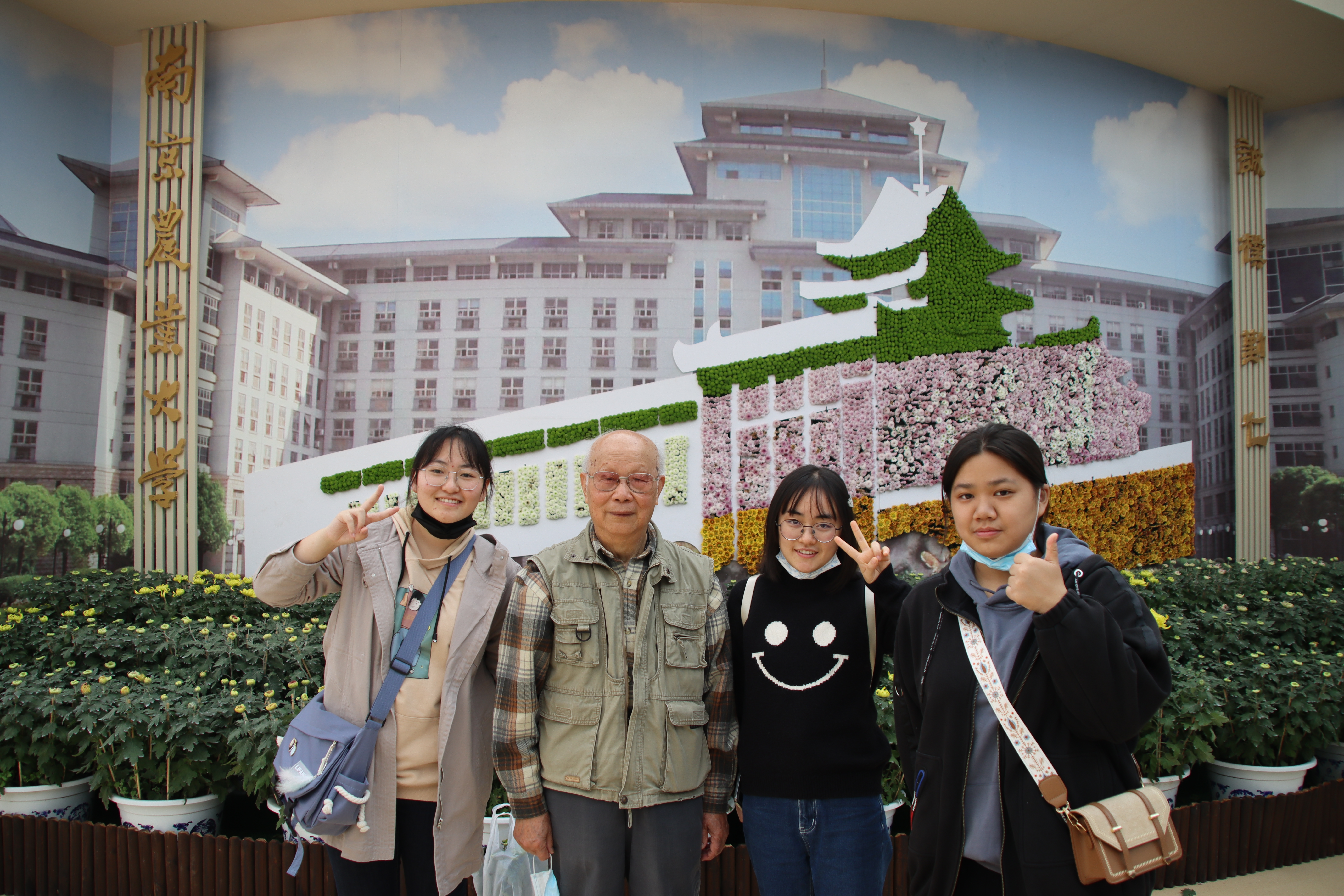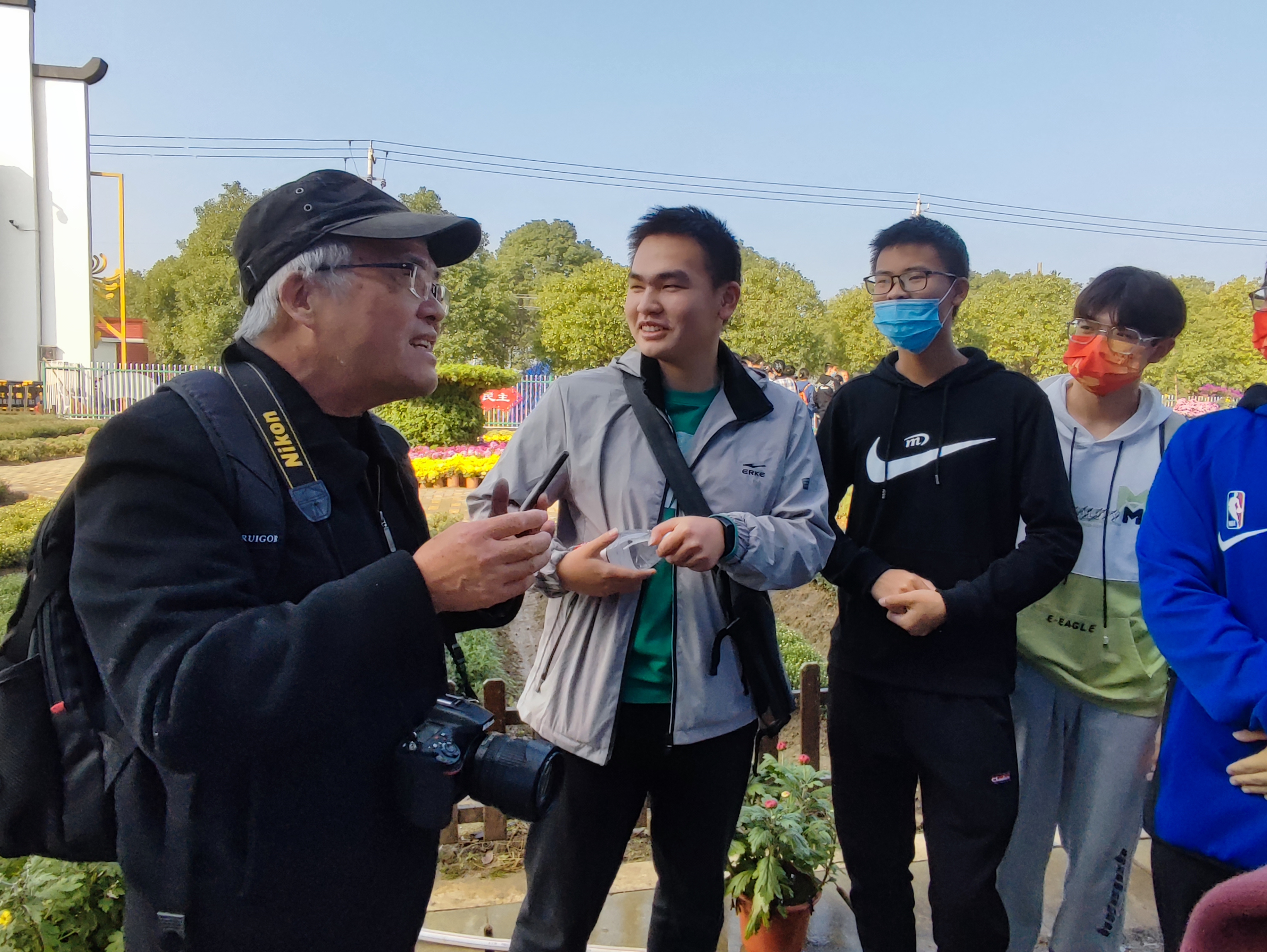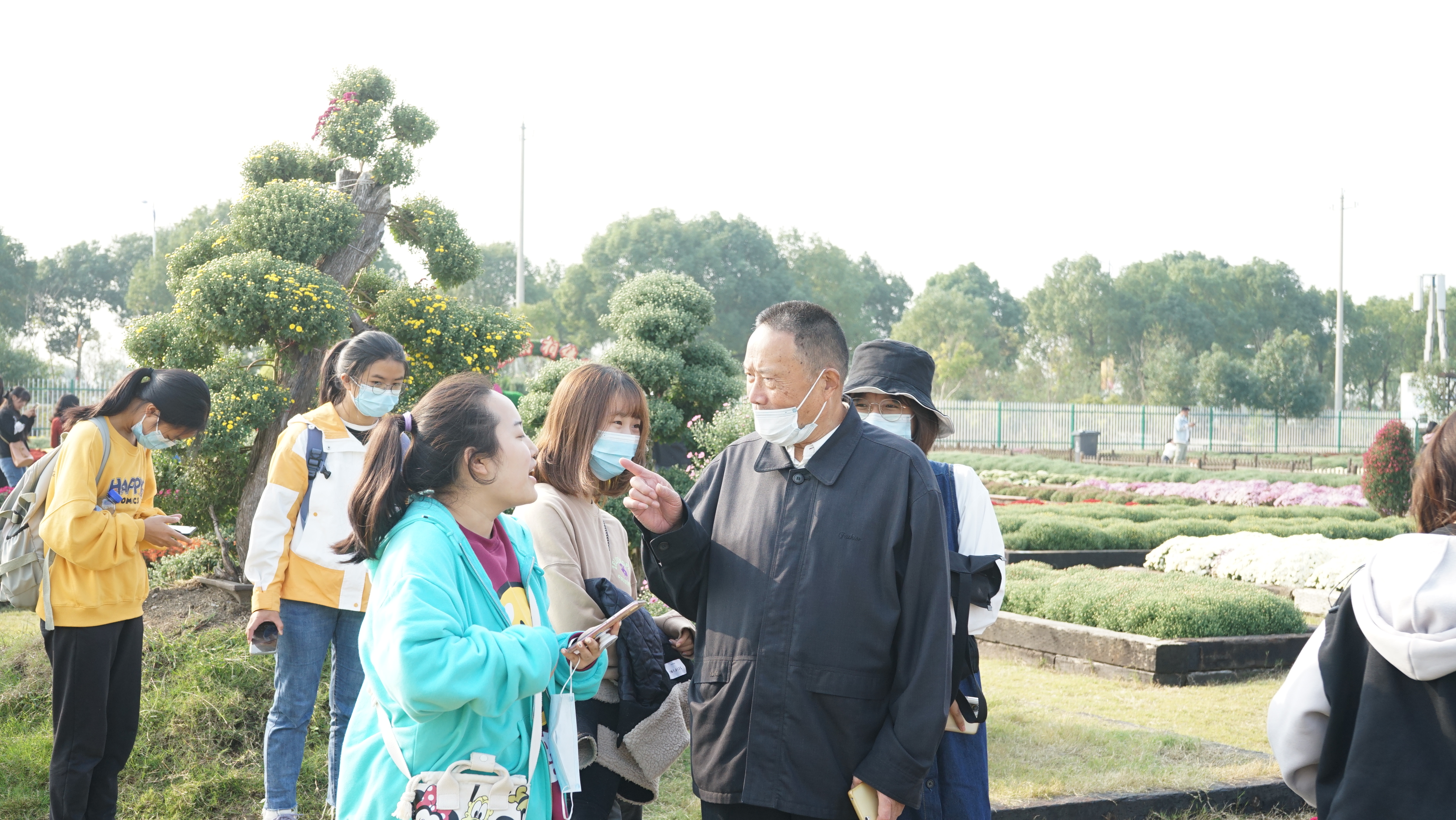 人同游菊展,一同欣赏,一同学习。班主任对专业知识的普及打破了同学们对于菊花的有限认知,关工委老师将实践与知识结合,亲自和同学们一起对菊花进行“零距离”观察,“面对面”研究,这不仅是知识的传承,更是将勤恳耕耘、拓展创新的科研精神传递给了新同学。