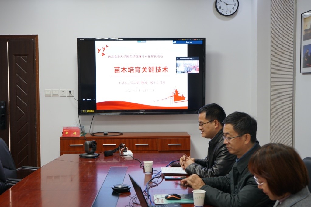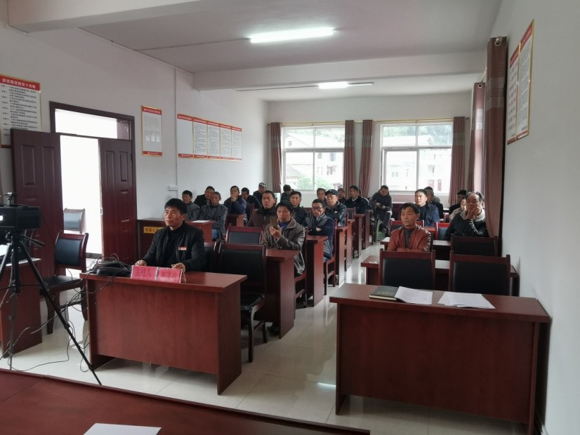 与谷羊村委进行了交流,征集了谷羊村在产业发展过程中遇到的困难和瓶颈。针对谷羊村发展“红花檵木”等绿化苗木过程中遇到的问题,管志勇教授做了题为“苗木培育关键技术”的专题培训。他从红花檵木的品种特点、生活习性、繁殖栽培事项到育苗基质配比、施肥养护等方面进行系统的讲授。33名参加培训人员认真聆听了学习技术讲座。