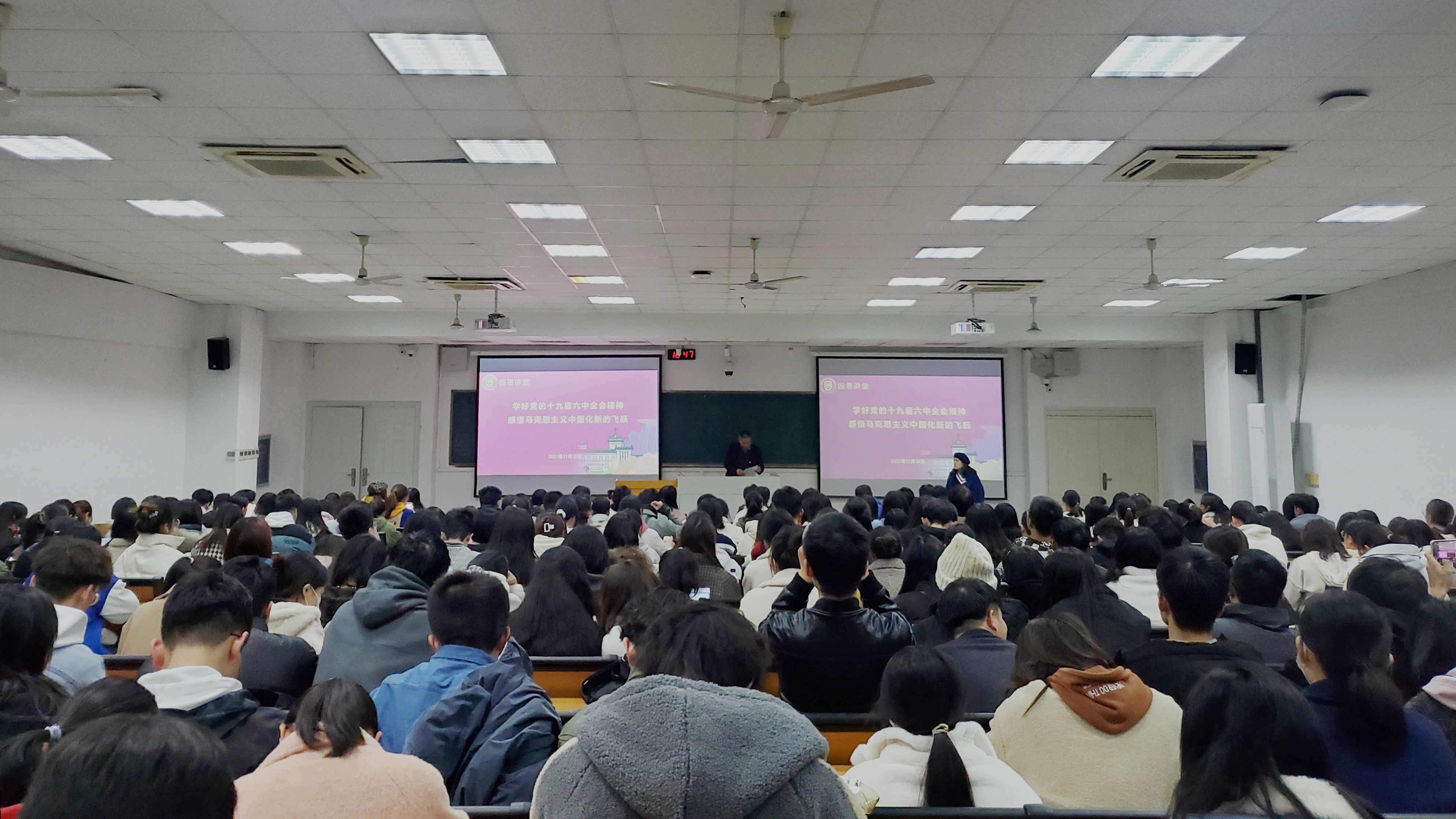 在教学楼c301教室举办园思讲堂暨信仰公开课十九届精神专题学习报告会,学习会特邀马克思成人影院