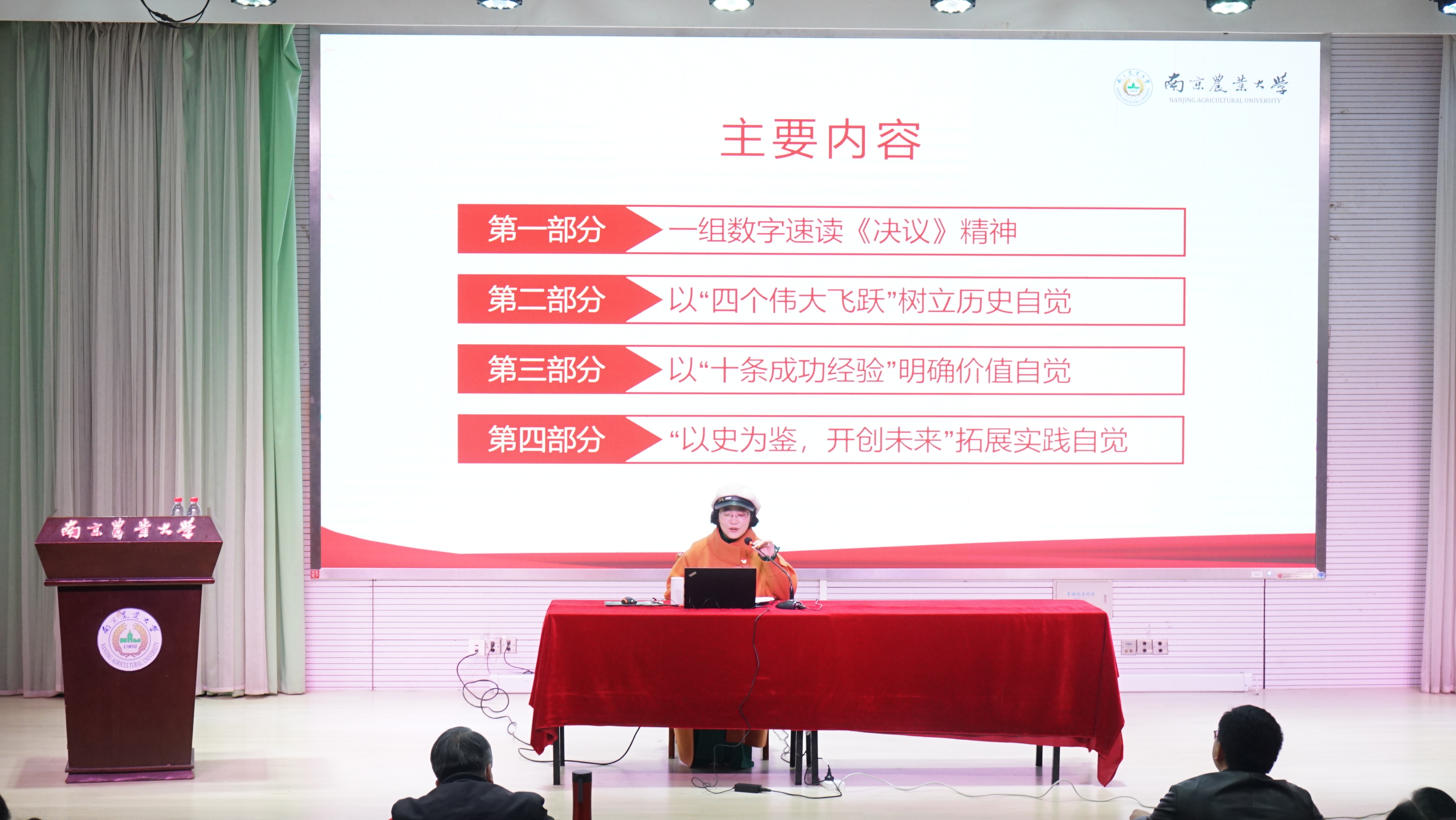 党委学习贯彻党的十九届六中全会精神宣讲团报告会在校教四楼报告厅举行,校宣讲团成员、马克思主义成人影院