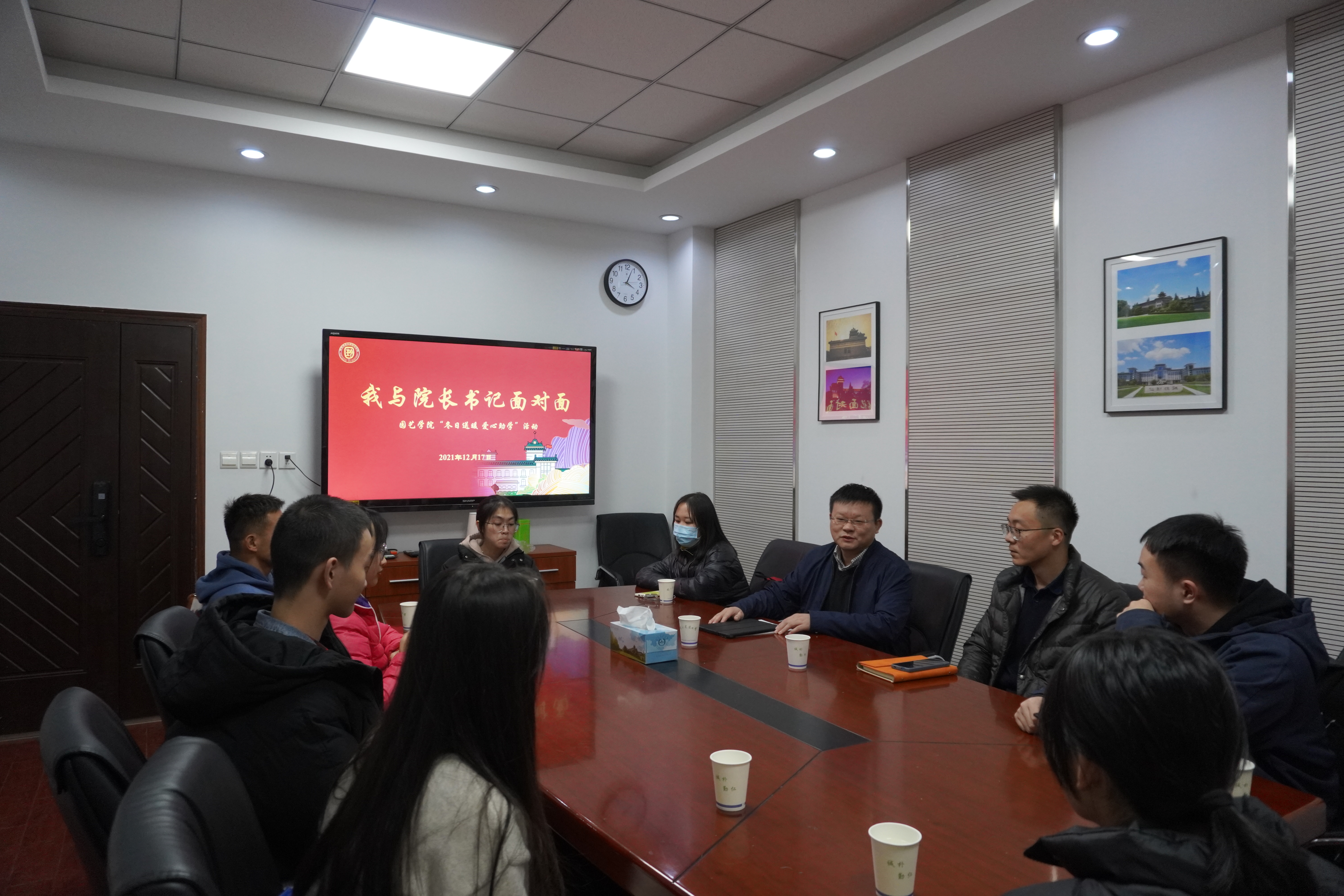 党委书记韩键、院长吴巨友、党委副书记文习成与学生面对面交流,心与心沟通。