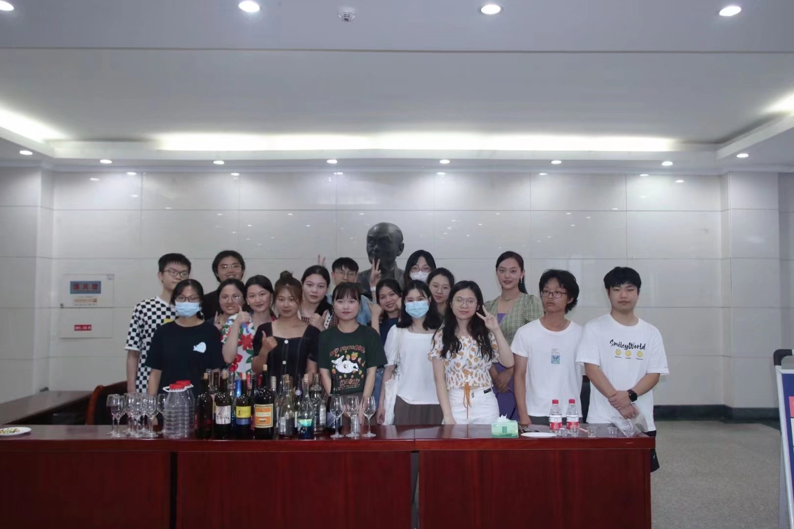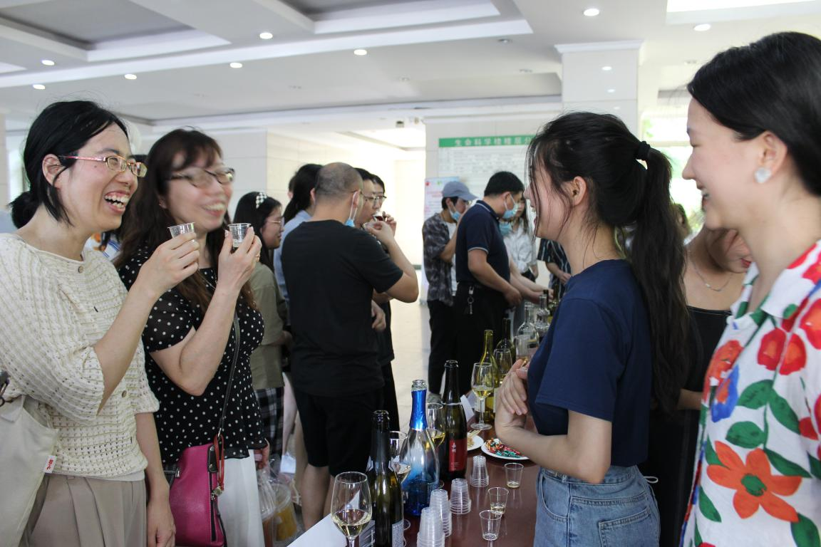 师生对葡萄酒的浓厚兴趣。葡萄酒是葡萄或葡萄汁经过传统及科学方法相结合进行发酵的果酒,天然的葡萄酒中蕴含多种抗氧化物质,营养价值丰富。葡萄酒的品质受原材料、酿造方法、酿造技术等的影响,不同类型区别较大。本次活动提供多种葡萄酒的对比品鉴机会,包括项目自酿红葡萄酒以及起泡葡萄酒、干型白葡萄酒、桃红葡萄酒、甜型红葡萄酒、干型红葡萄酒共计10余不同品牌和酒款,旨在通过品酒会加深大家对葡萄酒相关知识与文化的了解。