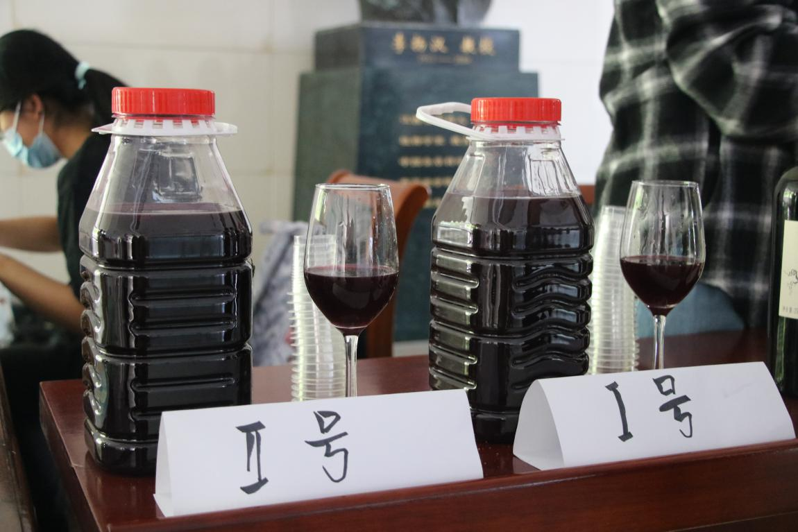 葡萄酒品鉴以“看、闻、品”为基本步骤。“看”即观察葡萄酒澄清度与色泽;“闻”是品鉴中最重要的过程,质量好的葡萄酒通常具有浓郁、清晰的果香、花香、酒香;“品”是通过口腔去感受葡萄酒的过程,利用舌头去品尝酒款的风味、甜度、酸度、酒精度、单宁、轻厚、回味,从而进行综合评价。现场师生品鉴各类美酒佳酿,展现出对不同酒款喜爱的差异化。而家庭自酿葡萄酒以酿酒葡萄、山葡萄或鲜食葡萄为原料,根据甜度与酒精度需求加入冰糖或砂糖。在适宜温度下葡萄表面的天然酵母可与葡萄汁中的糖发酵产生酒精,制作成香气十足的葡萄酒。
