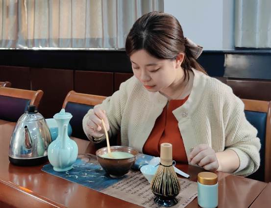 茶学专业赵真老师及何友月、韦珍妍两位茶艺生为大家演绎生动的茶艺课堂。伴随着行云流水的古典音乐,茶艺师开始了茶艺展示,并从识茶、选茗、择水、泡茶、品茶、茶礼、茶与健康、茶与修养等方面向大家细致的讲解了中国茶文化知识。温杯洁具,洗茶出汤,品味茶韵,一段茶艺,一曲古筝,一杯香茗,穿越古今,陶冶身心,意境丰盈,人间有味是清欢,似将整个春天揽入怀中。通过学习与演练,老师们在千年风雅的茶文化熏陶中,享受杯盏“点茶”的快乐,感悟中华文化的博大精深,领略了一场佳人与茗茶的曼妙邂逅,深深体会了“文化自信”!现场其乐融融,欢声笑语,品茗中还互相分享交流了工作经验。