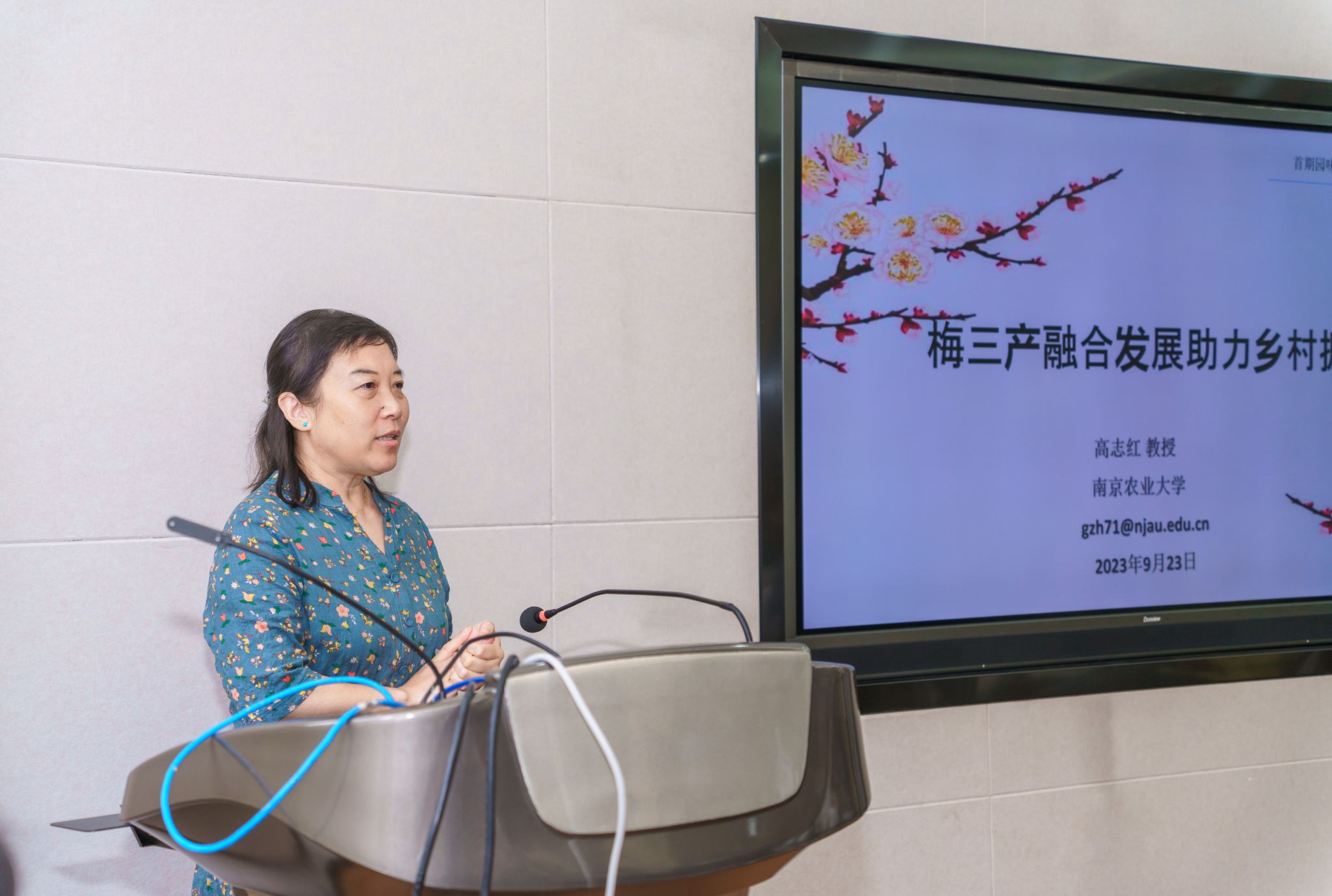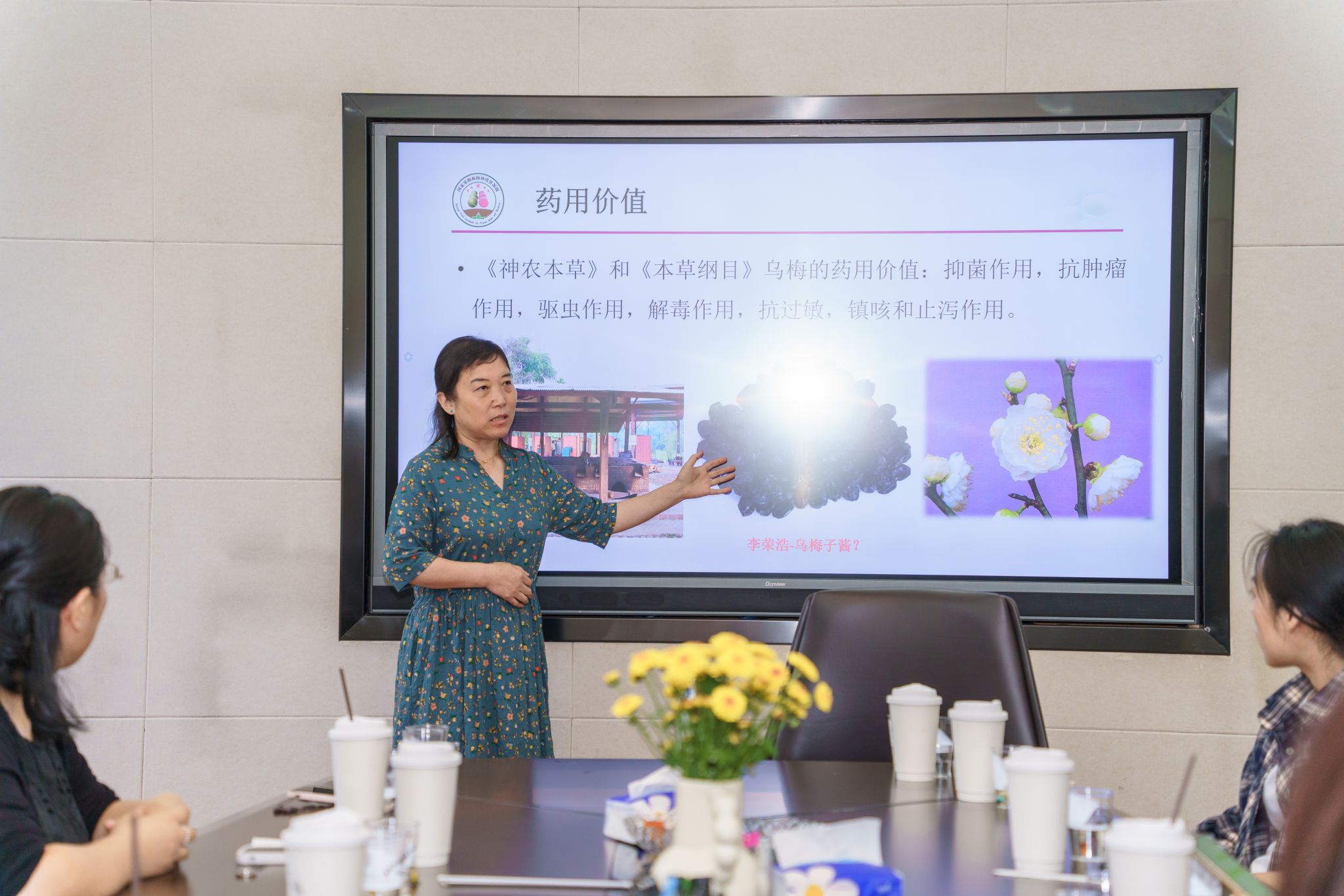 学科赵爽副教授分别作为主讲人分享了果梅杨梅和菊花种质资源的收集保护现状以及相关产品的开发利用: