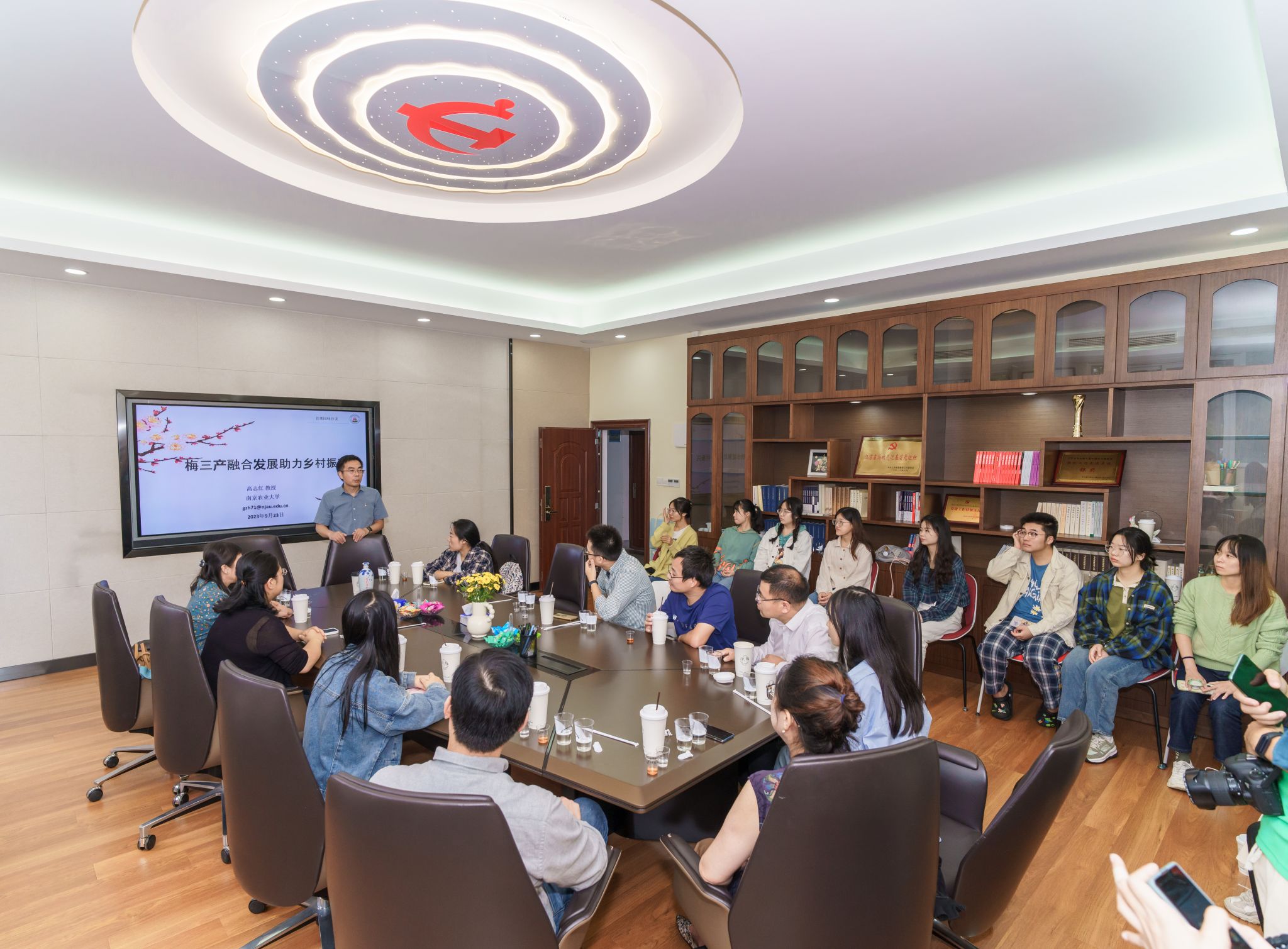 经过两位老师引人入胜的介绍和讲解,在场师生都对我国果梅、菊花等产业现状和未来发展模式有了全面而深刻的了解。讲解过后,大家针对种质资源保护与利用等问题分别向两位主讲人提出问题,并共同品鉴由菊花、果梅加工而成的菊花酒、果酒,果梅加工的果干、果脯等,现场气氛热烈而融洽。