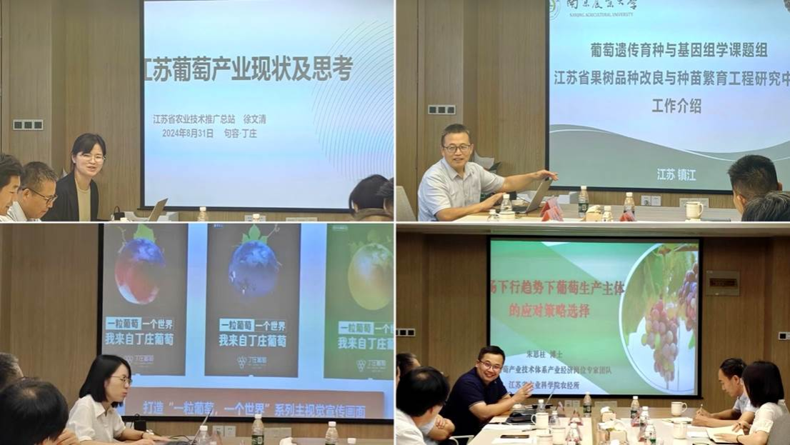 研究生处处长张长青教授分别就丁庄农业结构与葡萄产业情况、产学研合作对葡萄产业发展的重要性等进行了介绍与交流。随后,丁庄万亩葡萄专业合作社理事长陈玲、丁庄葡萄产业研究院院长芮东明研究员、江苏省农业技术推广总站果树科副科长徐文清、中国农科院郑州果树所姜建福研究员、江苏省农科院果树研究所吴伟民研究员以及江苏省农业科成人影院