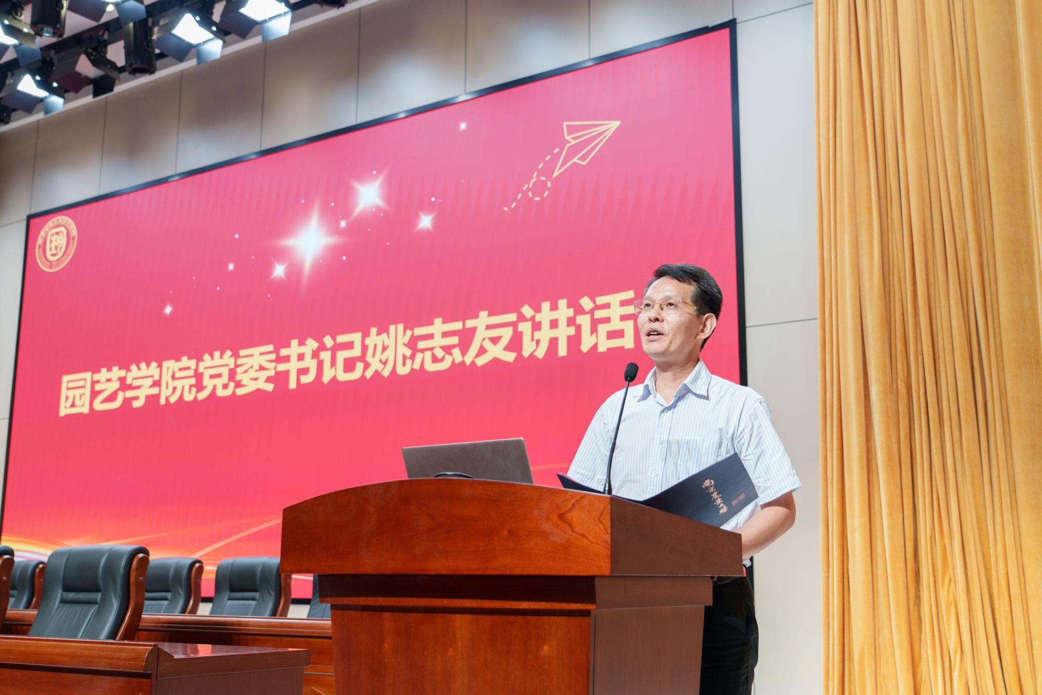 姚志友讲述了成人影院 的办学历史和辉煌成就。他希望大家以校训、院训精神为引领,铸就诚实正直品格;保持空杯心态,主动学习,不断完善自我;培养合作精神,通过沟通交流提升理论水平;树立社会责任感,心怀天下、勇于实践,为中国式现代化提供南农成人影院 人的答案。