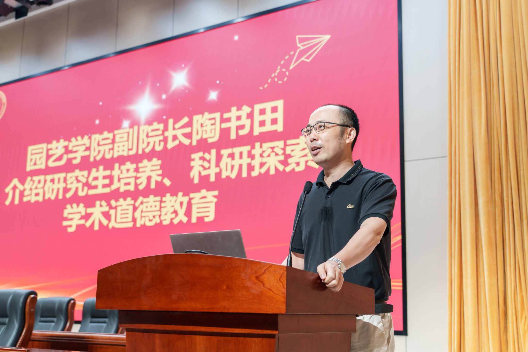 陶书田围绕研究生培养、科研探索和学术道德的主题进行适应性教育。他结合自身科研与工作经历提出三点建议,一是了解研究方向,培养学习兴趣,保持好奇心;二是提升科研素养,夯实基础,掌握科研工具,熟悉技术理论;三是善于规划和具体呈现,合理安排时间与节奏,清晰目标和方向,正确面对科研中的失败,砥砺前行。