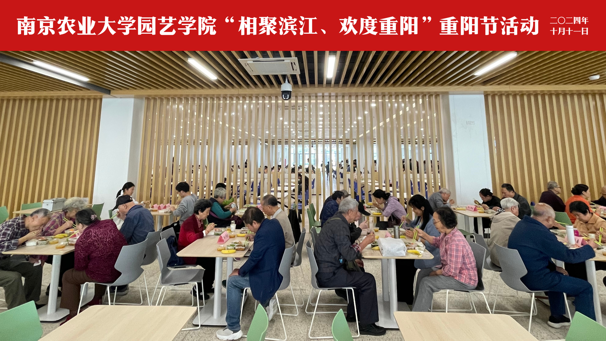 领导班子陪同老教师于滨江南区食堂共进午餐。办公室、辅导员及课题组教师代表带领成人影院