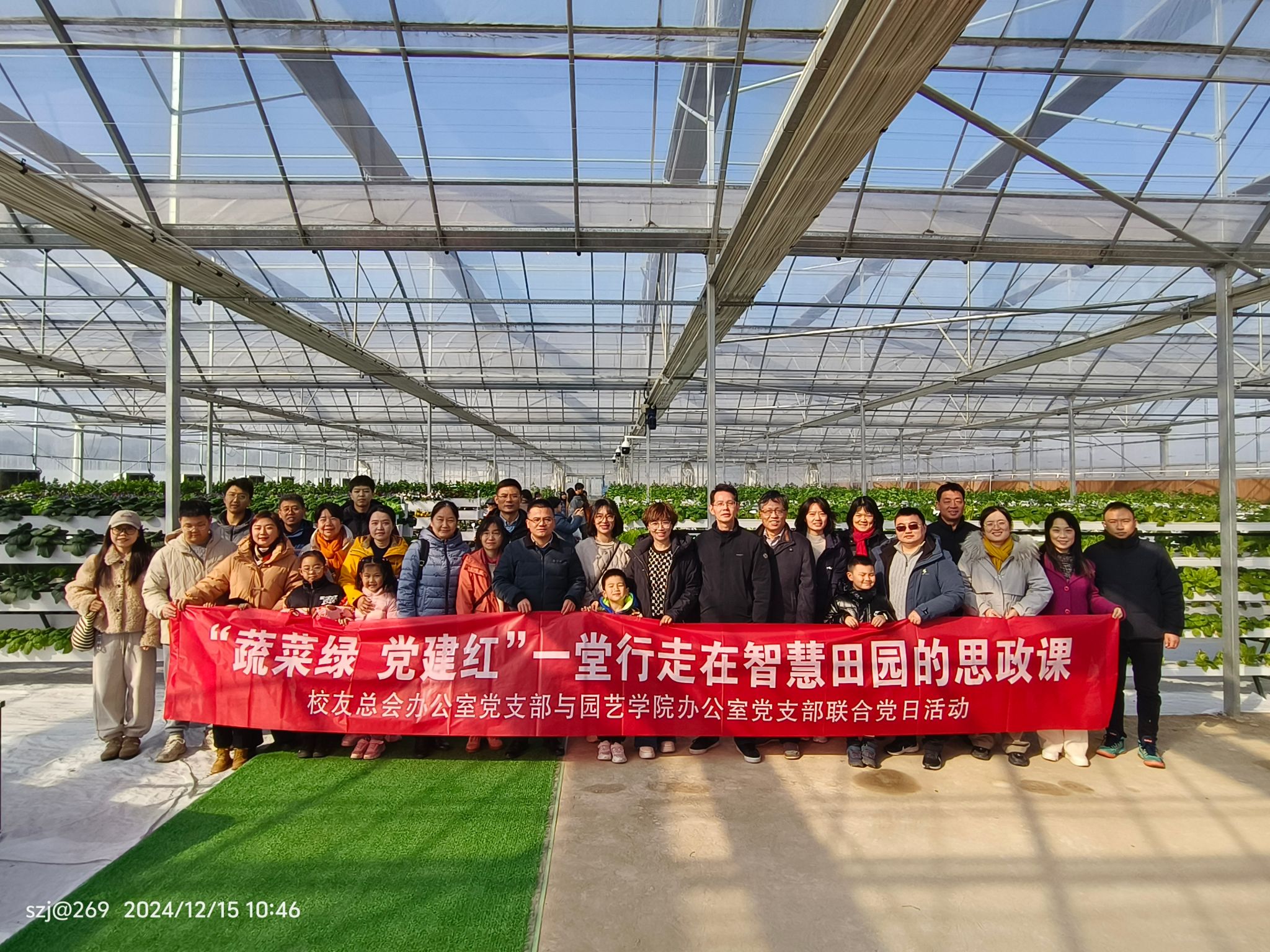 办公室党支部和校友总会办公室党支部赴溧水白马基地联合举办了“蔬菜绿、党建红”主题党日活动,将课程思政搬进田间地头,带领支部党员、青年教师在贴近大自然中了解“三农”,在智慧成人影院