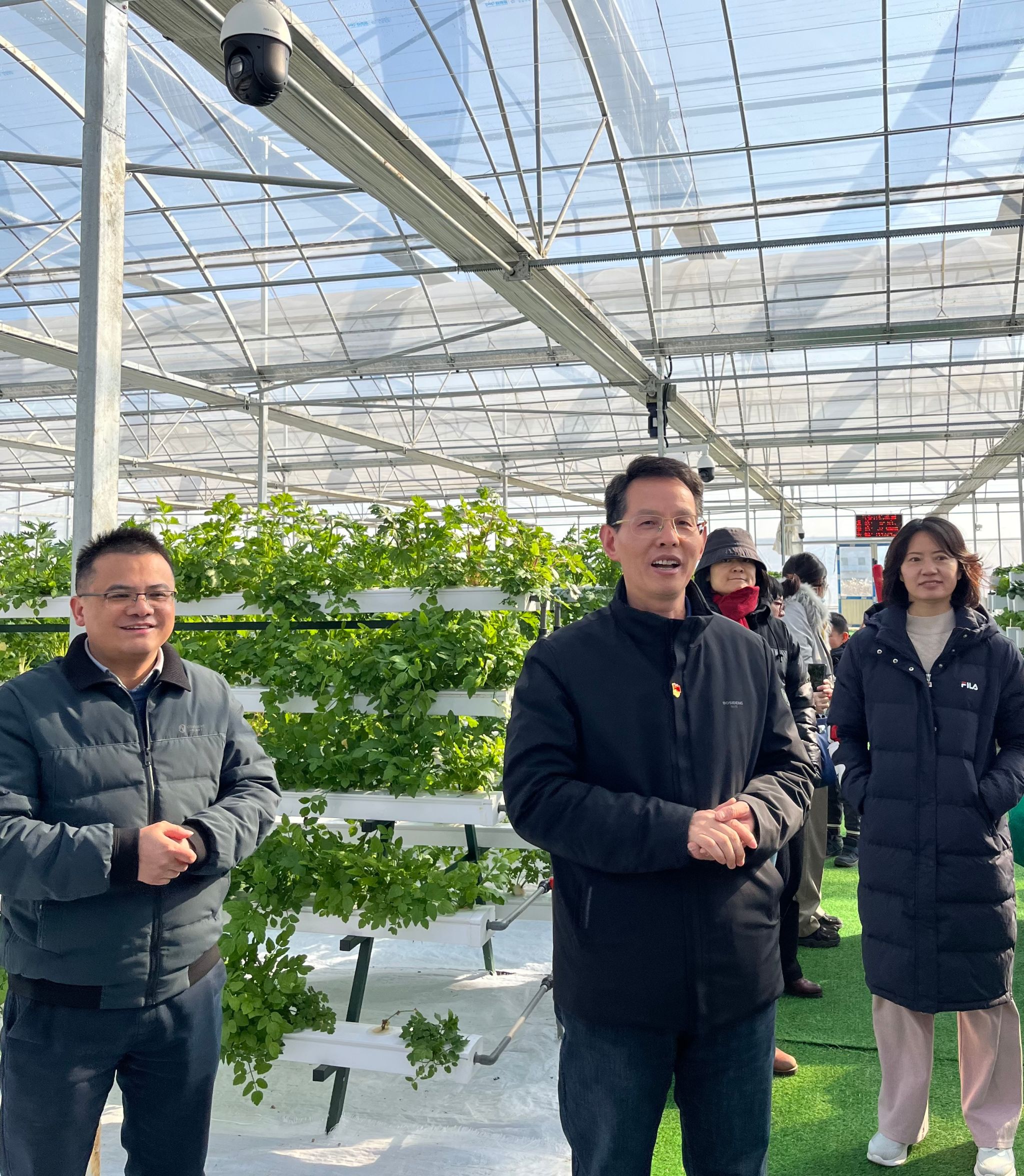 相比露天试验田,高效设施温室内则冬日如春生机勃勃、绿意盎然。在这里,姚志友给党员们带来一堂趣味横生的“园”味课程思政微党课,讲课中姚书记将“培花培根 育人育心”与立德树人和弘扬师德师风,营造风清气正的良好风尚有机融合,用良好风尚育人,犹如春风化雨,润物细无声。