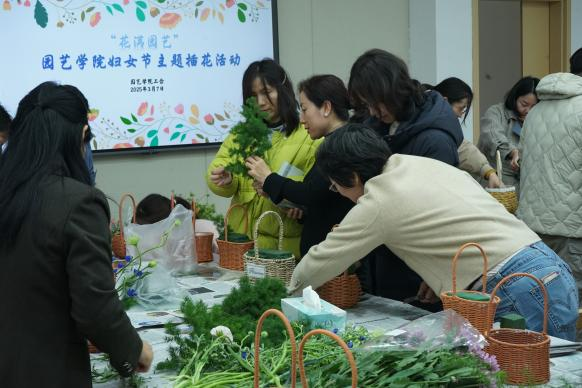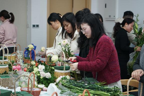 ”——妇女节主题插花活动,院长陈素梅、院党委副书记石木舟及各学科教师参与。