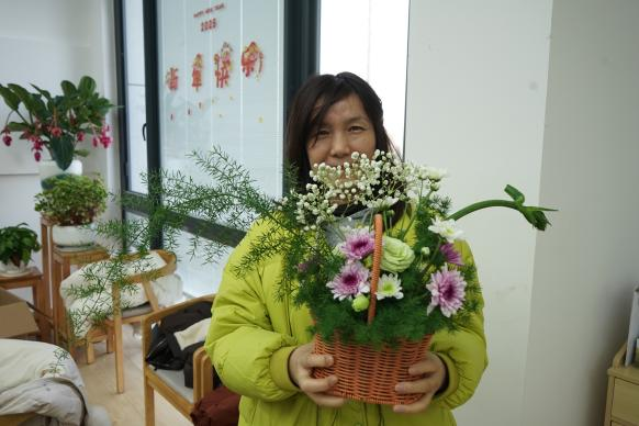 本次活动特邀陈素梅院长作插花技艺指导,她首先祝福成人影院