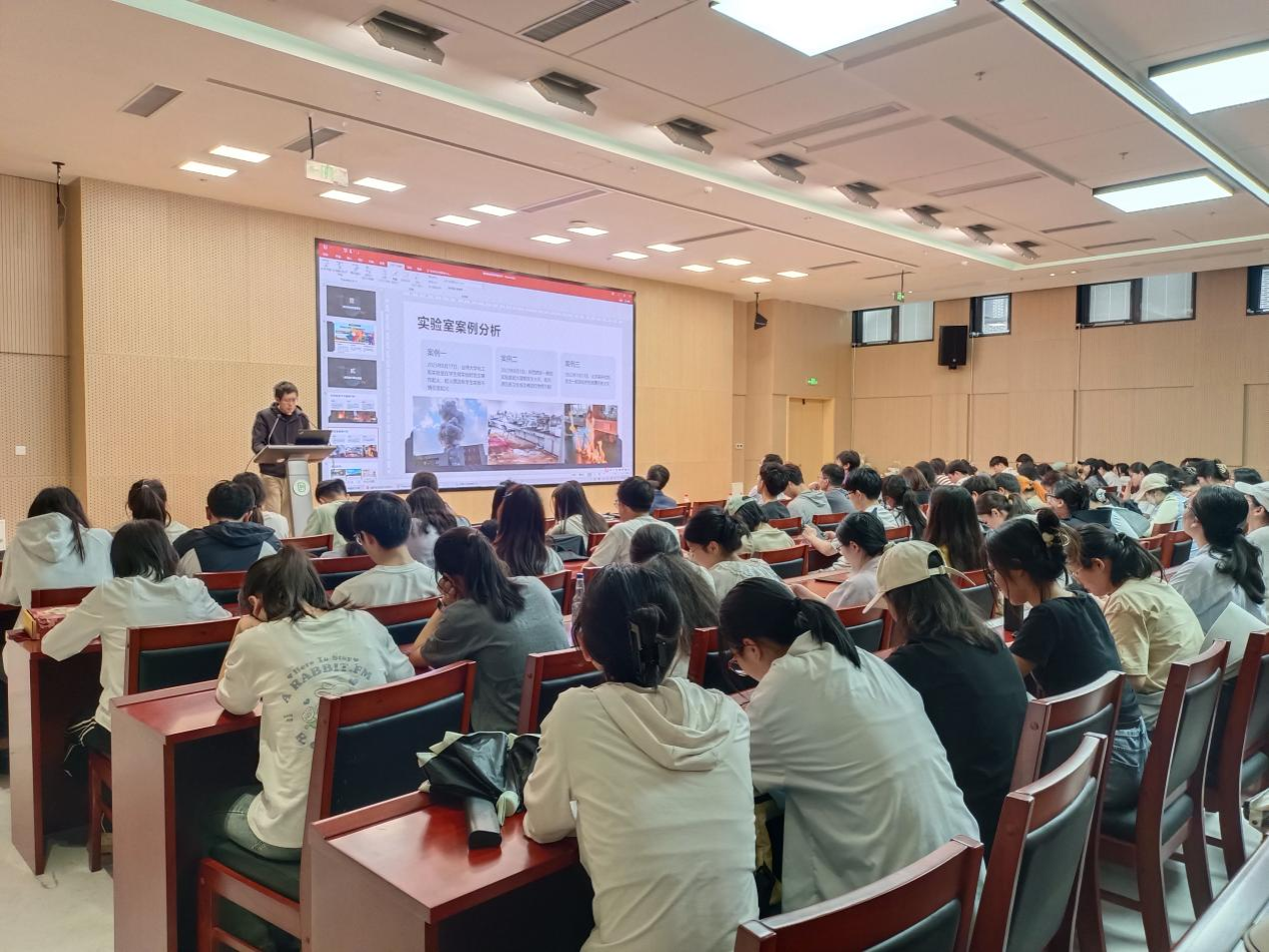 当前实验室安全工作存在的问题做了全面的分析,希望通过此次活动,一是进一步增强师生对消防安全工作的责任感;二是要通过本次消防培训演练,切实强化消防安全意识,不断提高面对突发事件的应变能力和自救能力,三是要求师生能够熟知各种消防器材的操作要点并熟练运用,为预防和减少安全事故的发生打下扎实的基础。