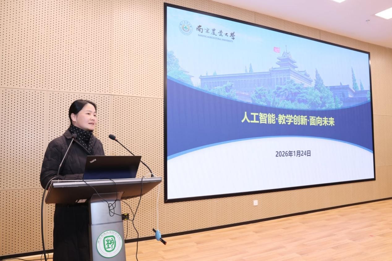 教务处处长曹爱忠围绕《人工智能赋能教育教学》展开分享。她详细介绍了AI技术在教学、实践训练及课程改革中的前沿应用,生动展现了智慧教育赋能人才培养的创新实践。
