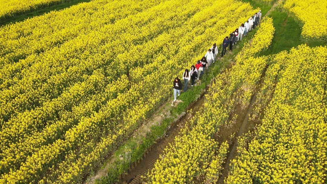 团队现场负责人褚晨晖介绍:“对很多人来说,这片花海也是一种乡愁的疗愈链接。看见油菜花会想起童年沾满花粉的袖口,想起灶台飘出的菜籽油香,想起田埂上跑过的一个又一个春天。”