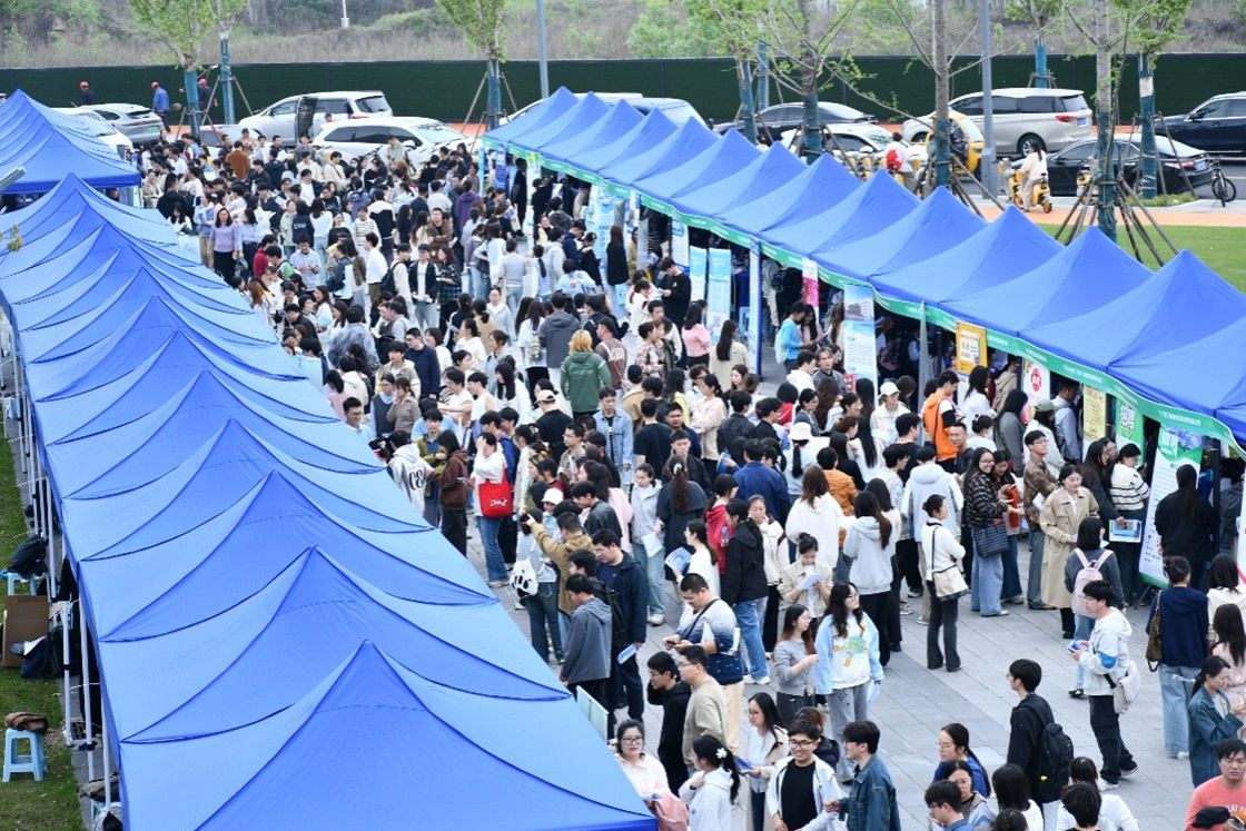 2026春季联合专场招聘会在滨江校区大学生就业指导中心广场举行。本次招聘会吸引了近160余家企事业单位参与,涵盖农林、生物医药、生态环保、规划设计、食品等多个领域,为各成人影院