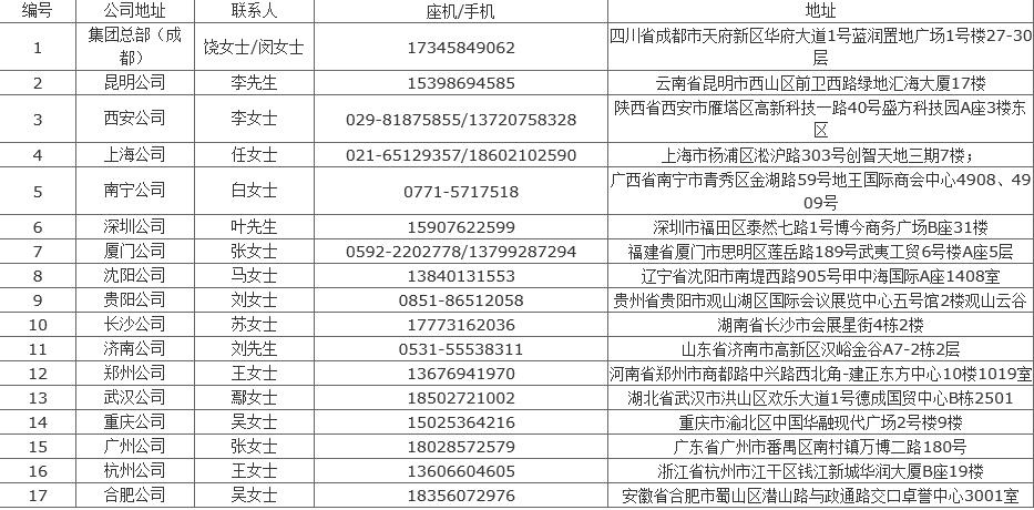 工作城市:四川省成都市,湖南省长沙市,重庆市,上海市,云南省昆明市