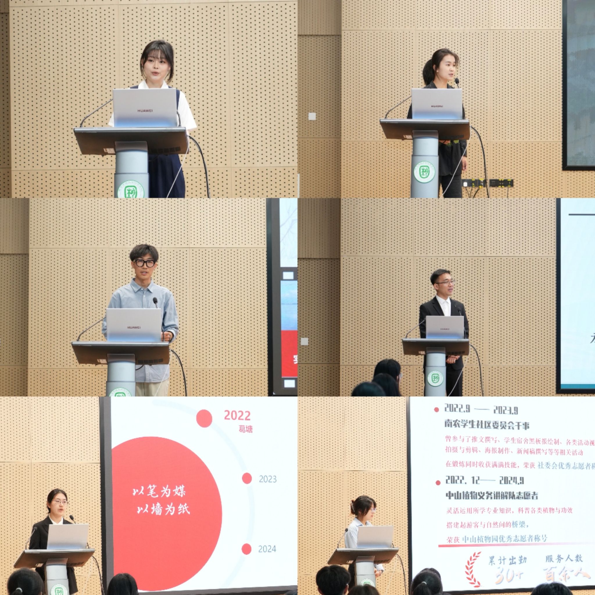 王冠华作为江苏省优秀班集体的代表,讲述了班级的“风景园林”的集体担当,诠释榜样集体对专业使命的躬身践行;赵嘉仪作为志愿服务类学生代表,通过志愿服务故事传递青年公益行动力与社会责任感,展现新时代大学生扎根社会的温度;匡嘉苗作为社会实践类学生代表,用墙绘展开了她与社会实践的故事,印证社会实践是青年洞察社会、服务社会的窗口;刘丁毅作为创新创业类学生代表,他所处的“贵梨不甜”项目一直走在促进梨产业发展的路上,凸显青年学子用创新驱动传统农业升级的担当;陈鹏作为学术科研类学生代表,分享了他的科研成果,体现了严谨求真的科研精神和“把论文写在大地上”的务实追求;秦个个通过“屋顶上有什么”的新颖视角,展现了从技术攻坚到人文关怀、从产业赋能到美学表达的成人影院