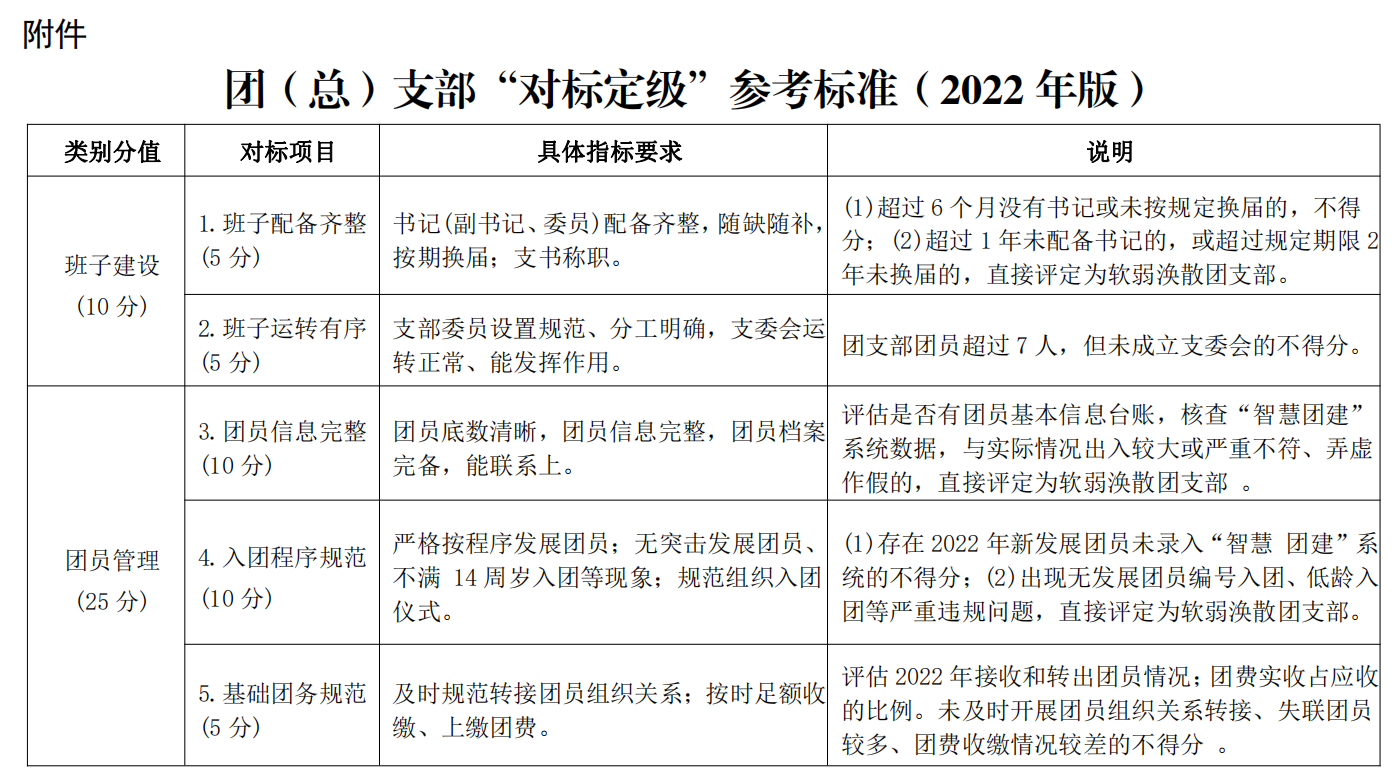 附件:团(总)支部“对标定级”参考标准(2022年版)