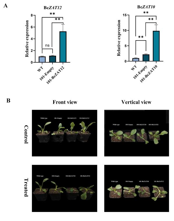 图3 瞬时转化BcZAT12和BcZAT10减弱不结球白菜的耐寒性