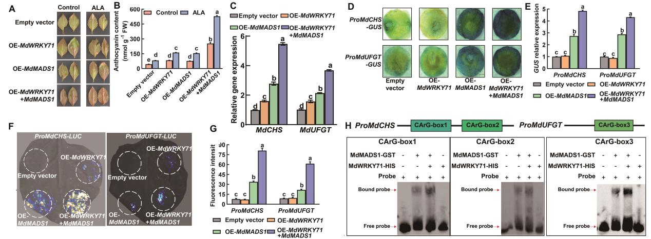 图片摘要 MdWRKY71-MdMADS1模块介导ALA诱导苹果花青苷生物合成的转录调控模式