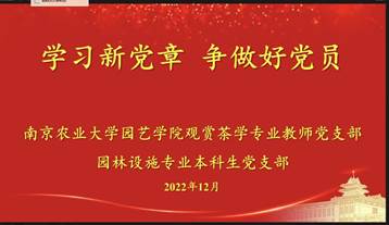 为学习贯彻党的二十大精神,2022年12月8日,观赏茶学专业教师党支部和园林设施专业本科生党支部开展了“学习新党章 争做好党员”的支部共建活动,马克思主义成人影院 陈蕊老师为两个支部的党员同志讲解了《中国共产党章程》。