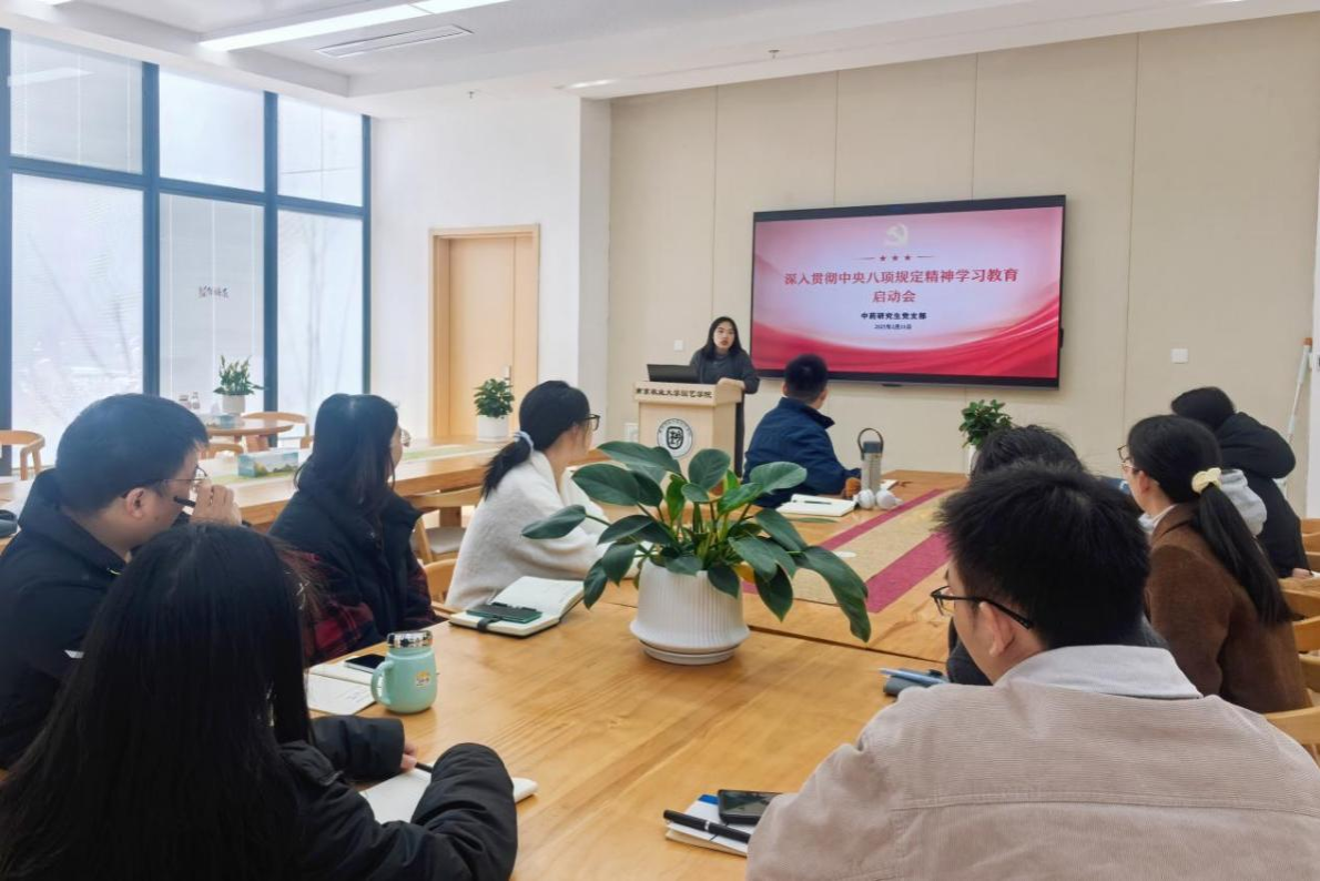 3月31日上午,中药研究生党支部召开关于深入贯彻中央八项规定精神学习教育的启动部署会议,启动会由支部书记窦靓主持。